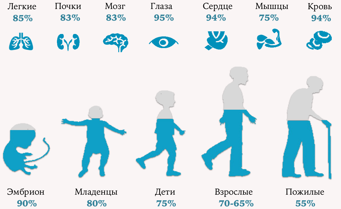 Человек зарождается в воде, но с возрастом содержание жидкости снижается