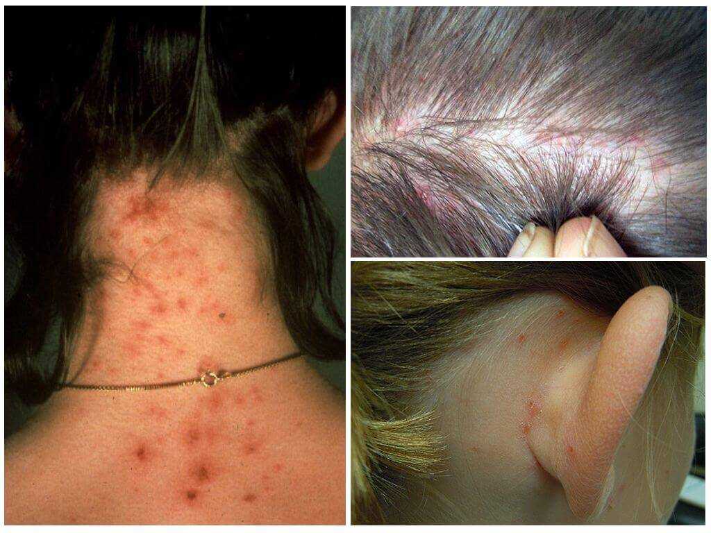 При первом признаке педикулёза — зуде головы — прежде всего необходимо осмотреть области за ушами, где сразу будут заметны покраснения и раздражение, свойственное укусам вшей. Рекомендуем вам ознакомиться со статьей о симптомах педикулеза у детей.