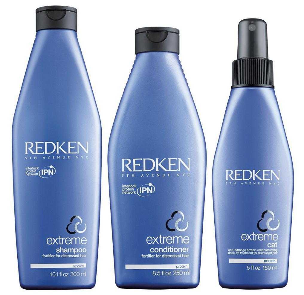 - Extreme — интенсивное восстановление структуры волос после окрашивания, регулярной сушки феном и выпрямления утюжком. Отзывы о Redken Extreme подтверждают, что после процедур с финиш-лосьоном и маской из этой серии волосы преображаются до неузнаваемости.