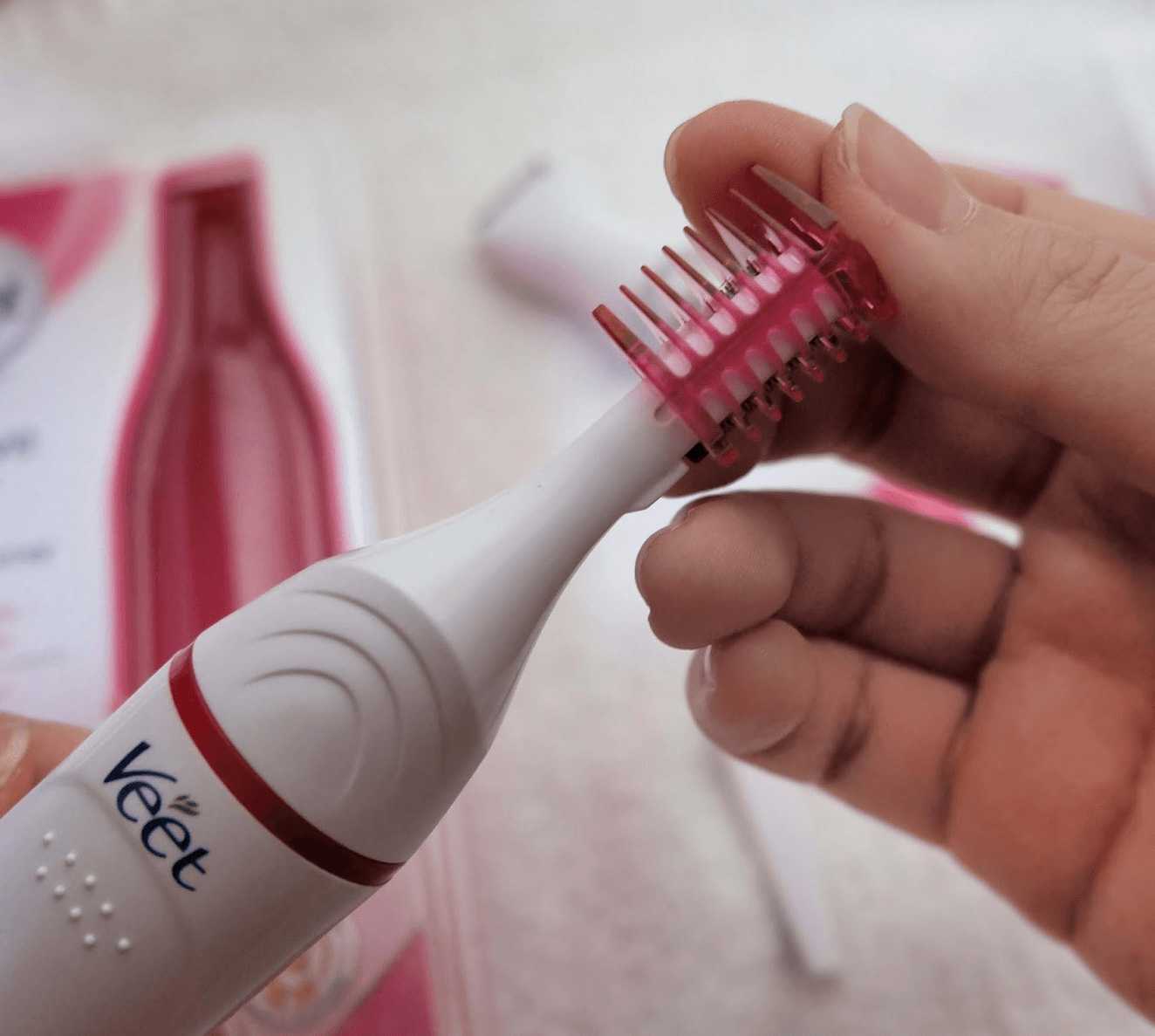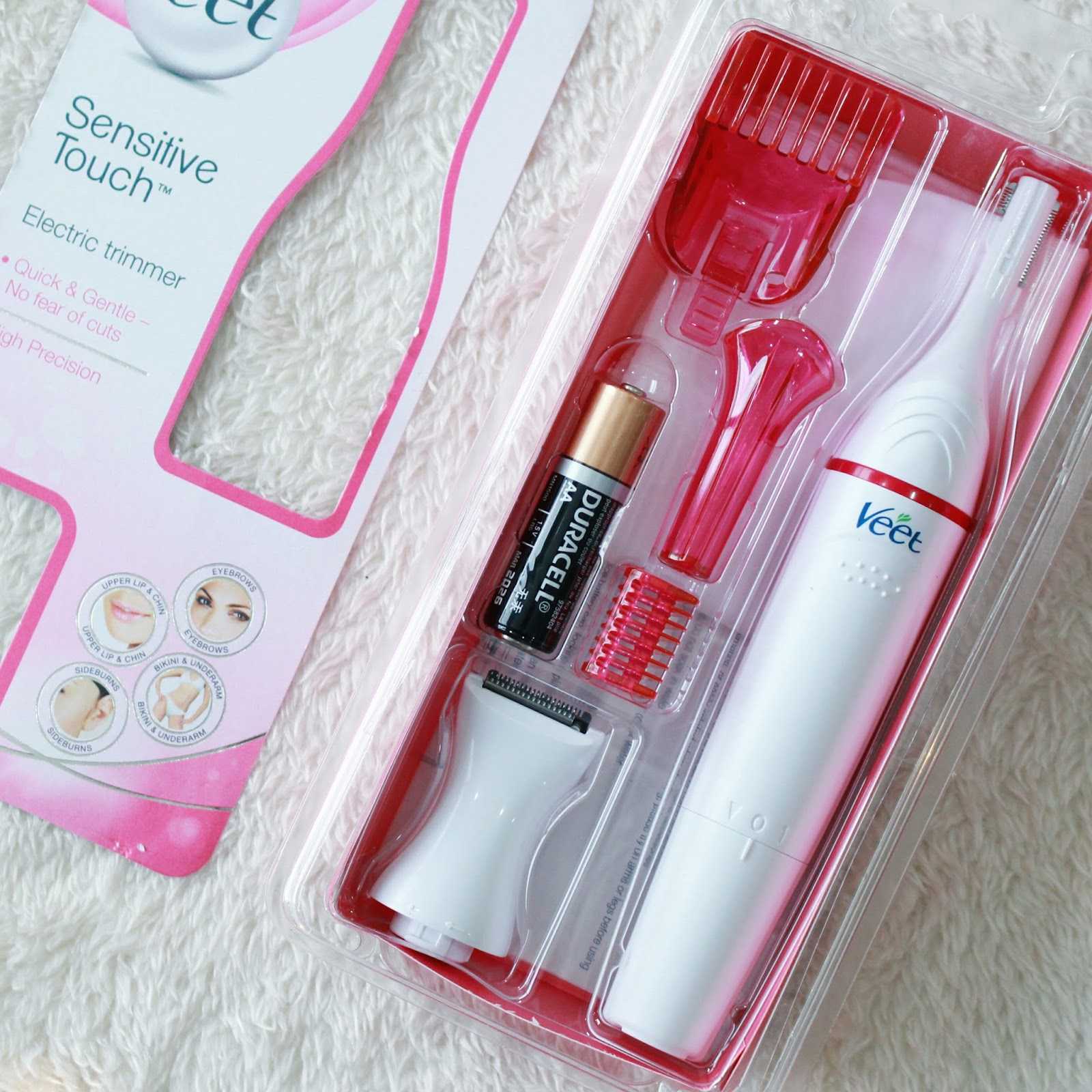 - Плохо удаляет грубые и жёсткие волоски. Такие волоски нередко после удаления оставляют под кожей фолликулы, убрать которые может только профессиональный эпилятор. Триммер Veet не предназначен для удаления волосяных луковиц, поэтому бороться с такими следами на коже с его помощью не получится.