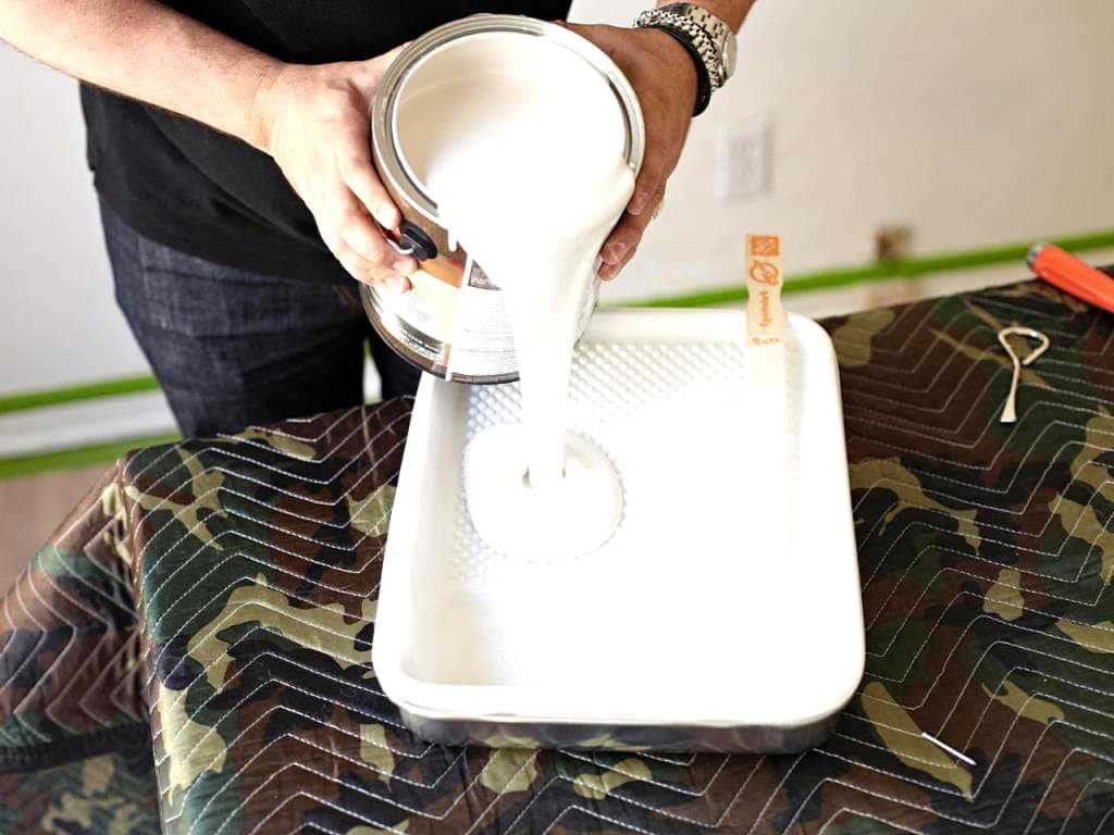 - Налейте затонированную эмульсию в ванночку и хорошо прокрутите валик, чтобы он впитал жидкость. Затем, сильными нажимами в ванночке уберите лишнюю краску с валика.