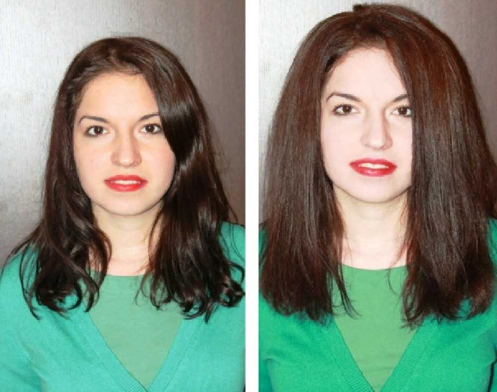 Волосы сушат феном, а затем в ход идет утюжок, который проходит по каждой пряди не менее 15 раз. Когда волосы полностью остынут, их вновь очищают при помощи шампуня, а затем укладывают привычным способом.