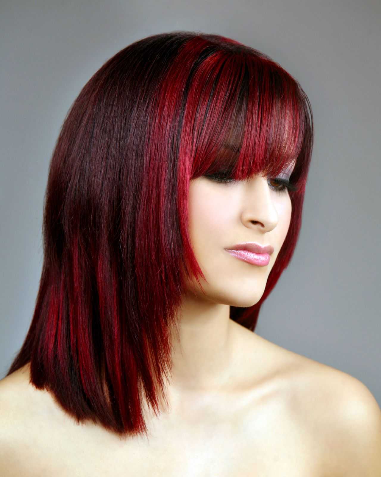 При многоцветном колорировании популярны сочетания винных, баклажанных, каштановых и сливовых тонов