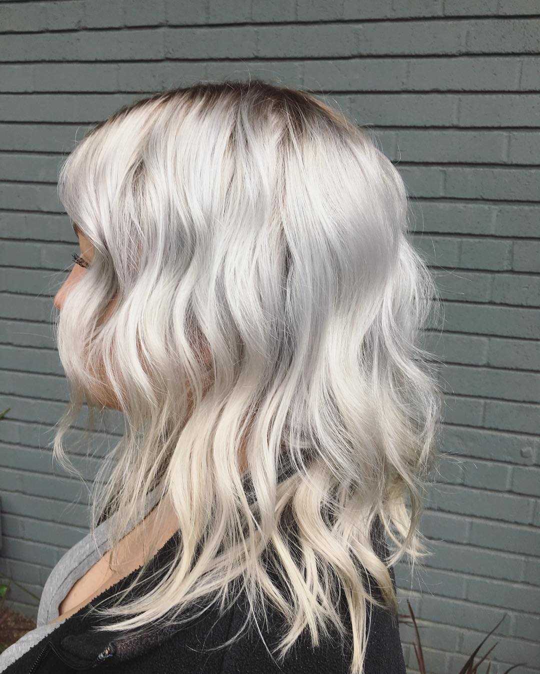 Если девушка-блондинка хочет освежить имидж, ей стоит покраситься в самый светло-пепельный цвет. Этот вариант напоминает белый с серо-пепельным отливом. Из-за своей специфичности цвет капризен: его выбирать стоит лишь «холодным» блондинкам.