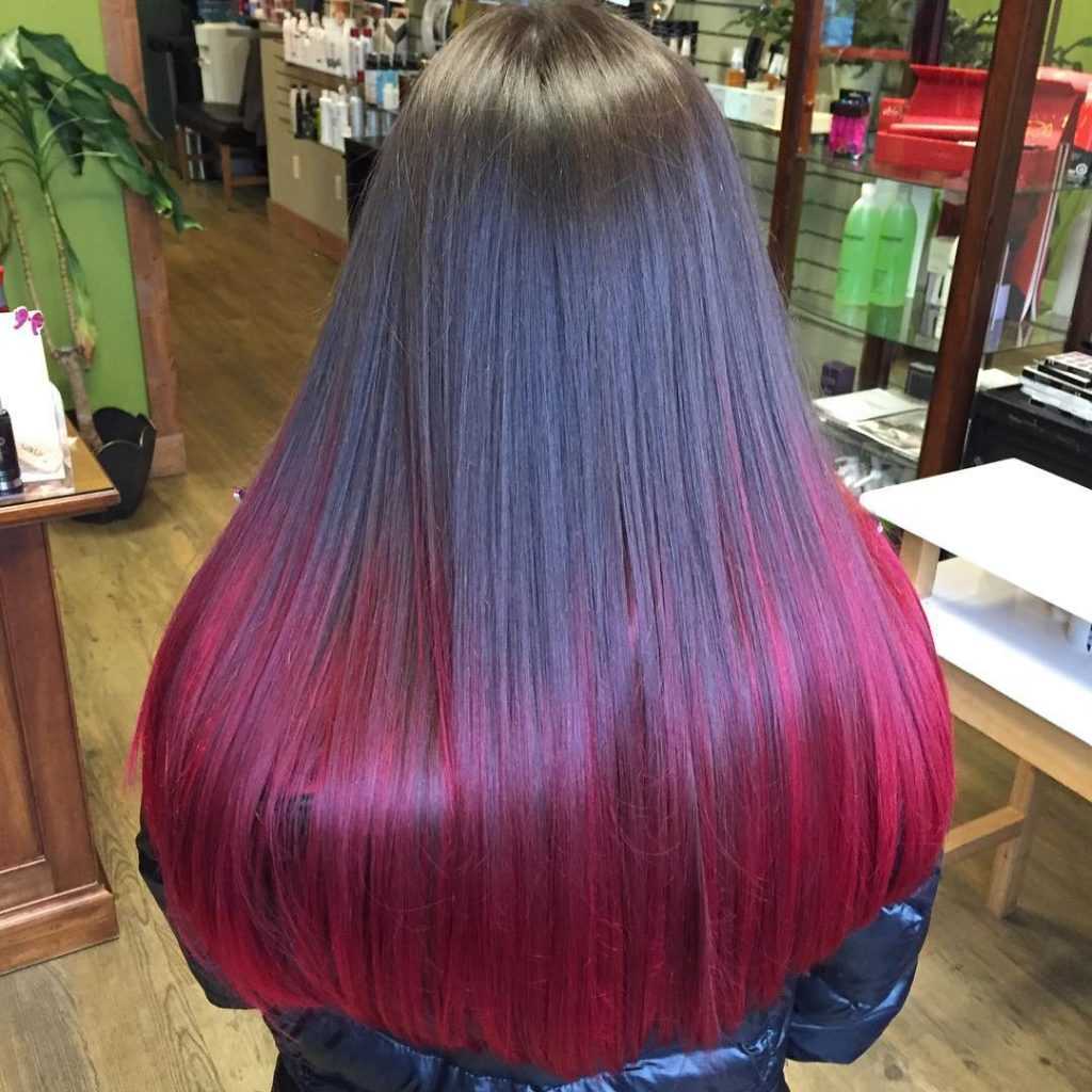 Результат ограничивается только вашей фантазией. Можно использовать самые яркие и необычные оттенки красного и рыжего, создавать мультитональное окрашивание с самыми нетривиальными переходами: красный с мятным, фуксия с голубым и так далее. Однако есть некоторые нюансы. Так, перед окрашиванием нужно высветлять кончики, что может негативно повлиять на их структуру. Кроме того цветной пигмент очень капризный и быстро вымывается, поэтому градиент нужно периодически обновлять.