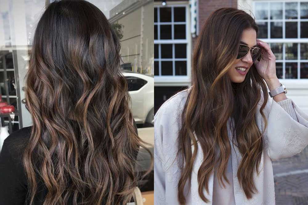 Девушки с темным цветом чаще относятся к осеннему и зимнему типажам. Для них подходящими оттенками в мелировании станут янтарный, золотистый, коньячный, бронзовый цвета. В готовом окрашивании они придадут прическе дополнительный объем и эффект чистого натурального выгорания.