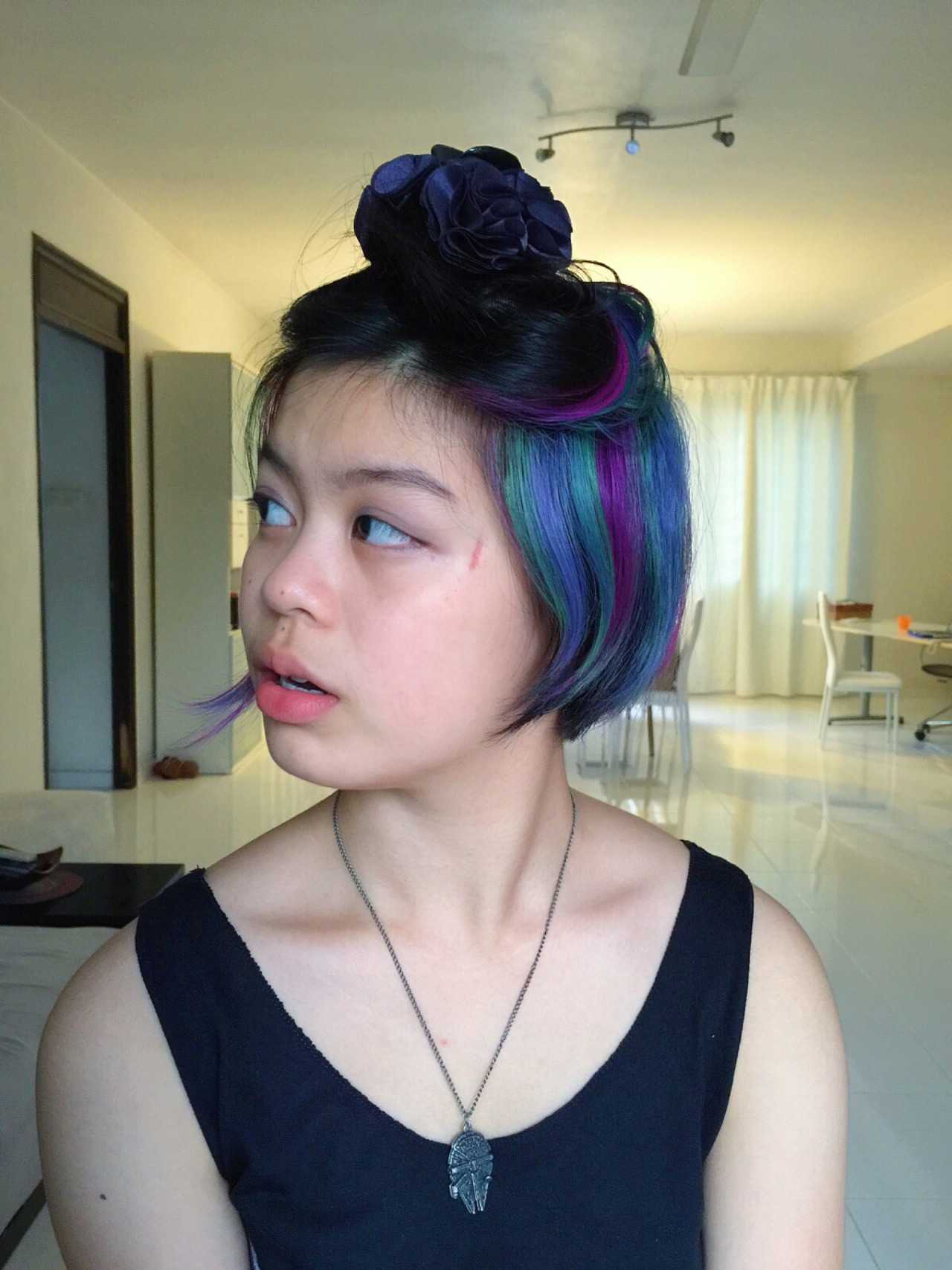 Peek-a-Boo — это методика нанесения краски основывается на обработке нижней части прически экстремально яркими или темными оттенками