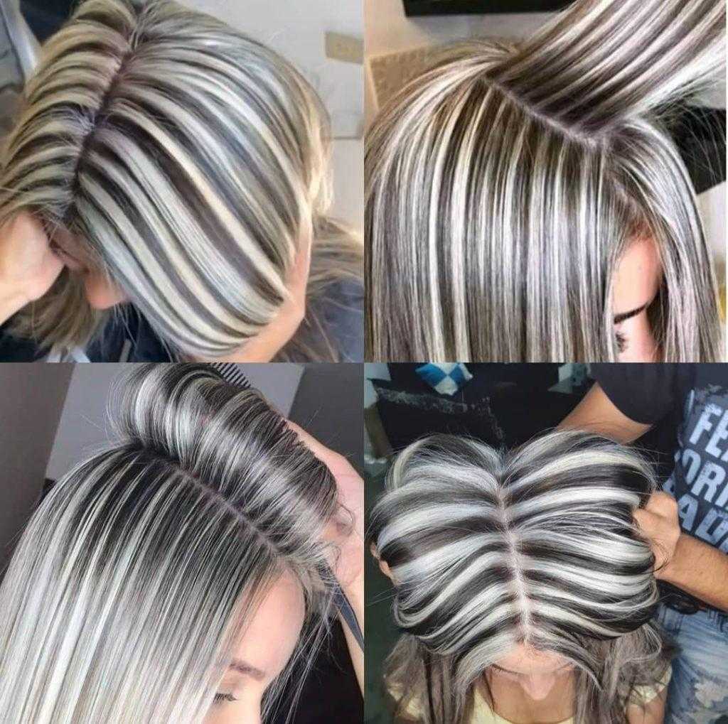 Один из самых креативных вариантов окрашивания волос. По-другому зебра еще известна, как арбуз. Технология окраски волос подразумевает использование светлого или белого тона, который вступает в контраст с родными или тем, который уже имеется на волосах. Мастер выделяет пряди с крупным шагом и симметрично пробору, что в итоге образует четкие полосы, словно зебра.