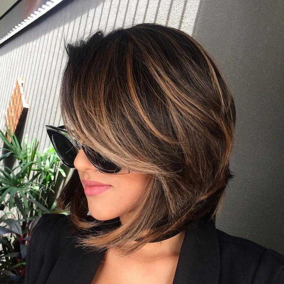 Средняя длина локонов позволяет применять все имеющиеся методики. Одним из шедевров колористики в 2018 году становится техника «тигровый глаз». Это новейший модный оттенок волос. Локоны приобретают мягкость переходящих друг в друга тонов одноименного полудрагоценного камня, завораживая медным блеском. Ненавязчивое сочетание темной кофейной основы и карамельно-янтарных цветовых вспышек создает необыкновенно красивый перелив цветов. Этот колористический шедевр уже опробован звездами и способен выйти на первое место в новом сезоне.
