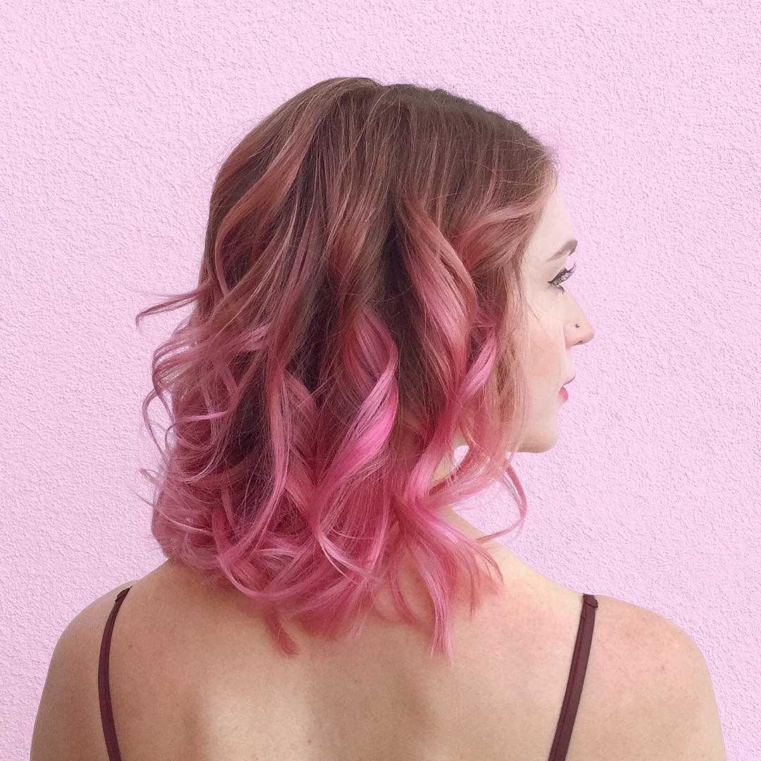Обладательницам русых волос можно поэкспериментировать с розовым отливом. Таким дамам подходят все оттенки. Выбирать следует по вкусовым предпочтениям, учитывая возраст, ведь ярко-розовое омбре на женщинах преклонного возраста смотрится нелепо.