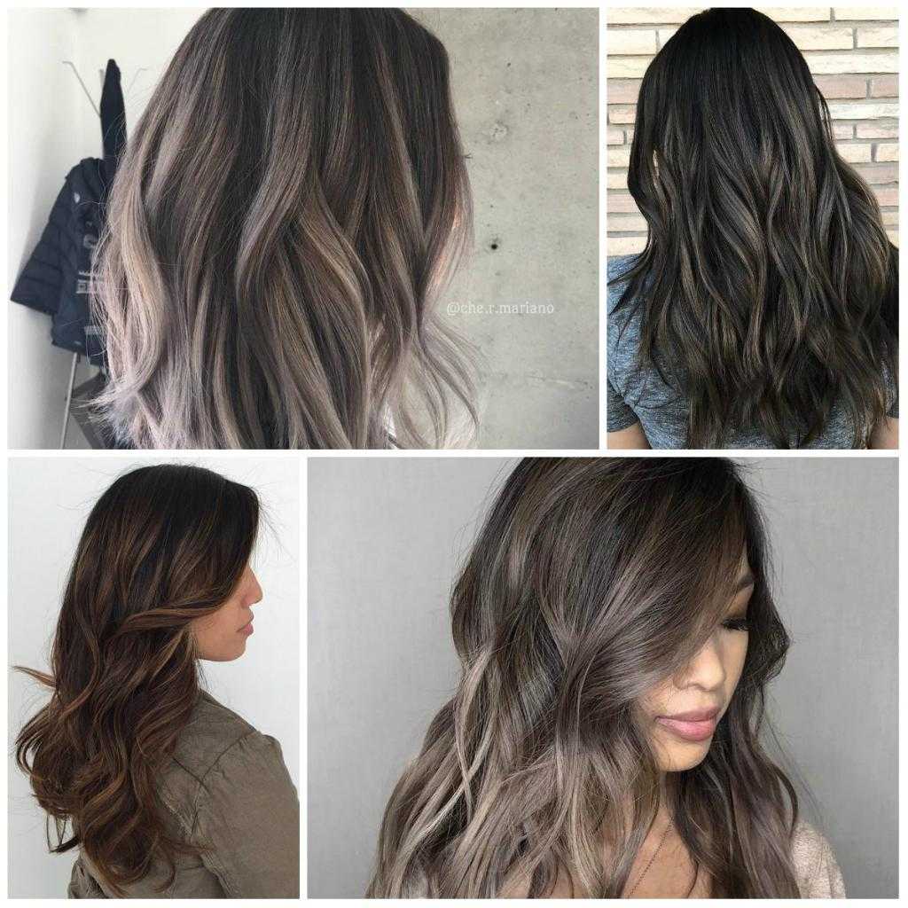 Также данный оттенок подходит и брюнеткам, так как коричнево-пепельные и черно-пепельные волосы отличаются всего одним или двумя тонами. Очень красиво на брюнетках будет смотреться один колер (другими словами, однотонное окрашивание). Также можно прибегнуть к таким техникам как балаяж, омбре (далее будет приведена инструкция по окрашиванию в данной технике). Все перечисленные приемы подчеркнут красоту причесок с длинными прядями, а коротким стрижкам придадут филигранности.