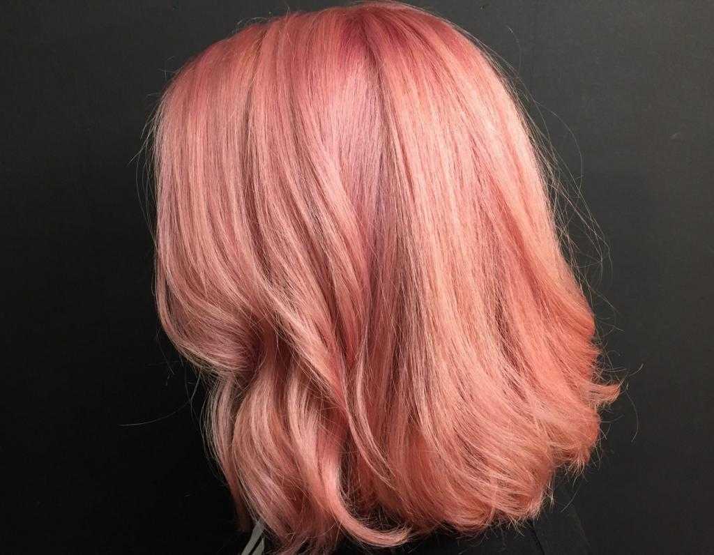 Розовое золото. Составляющим этого оттенка выступает холодный тон – лиловый, золотистый и пастельно-розовый. Благодаря такому сочетанию можно создать женственный, девичий, но в то же время очень смелый образ. У многих данный колер ассоциируется с пастельной глазурью на волосах.