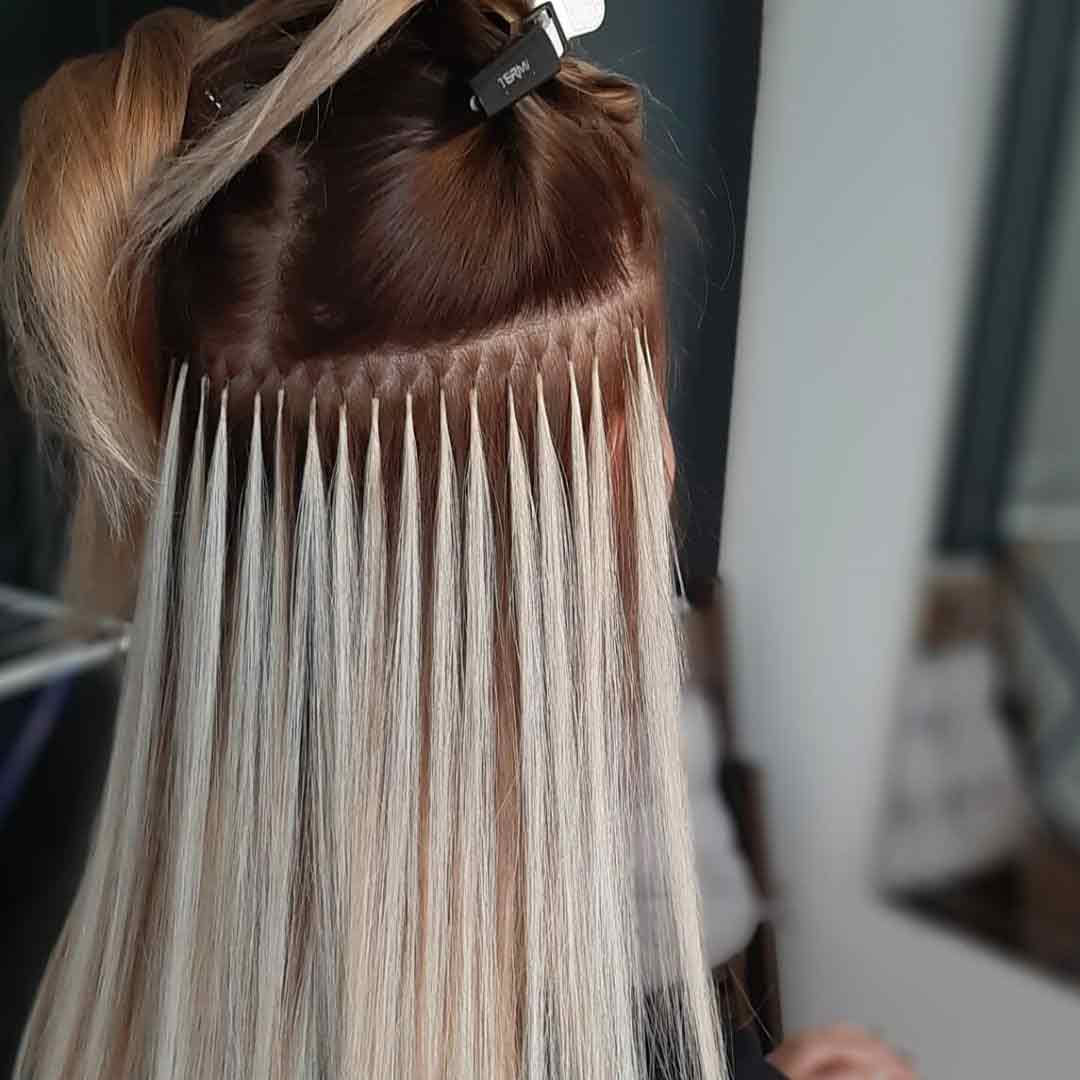 Суть методики заключается в приклеивании искусственных прядей-лент на родных волосы. В процессе используется клей, который, редко, но может вызвать аллергию. Также эта процедура требует частой коррекции: раз в 1–2 месяца.