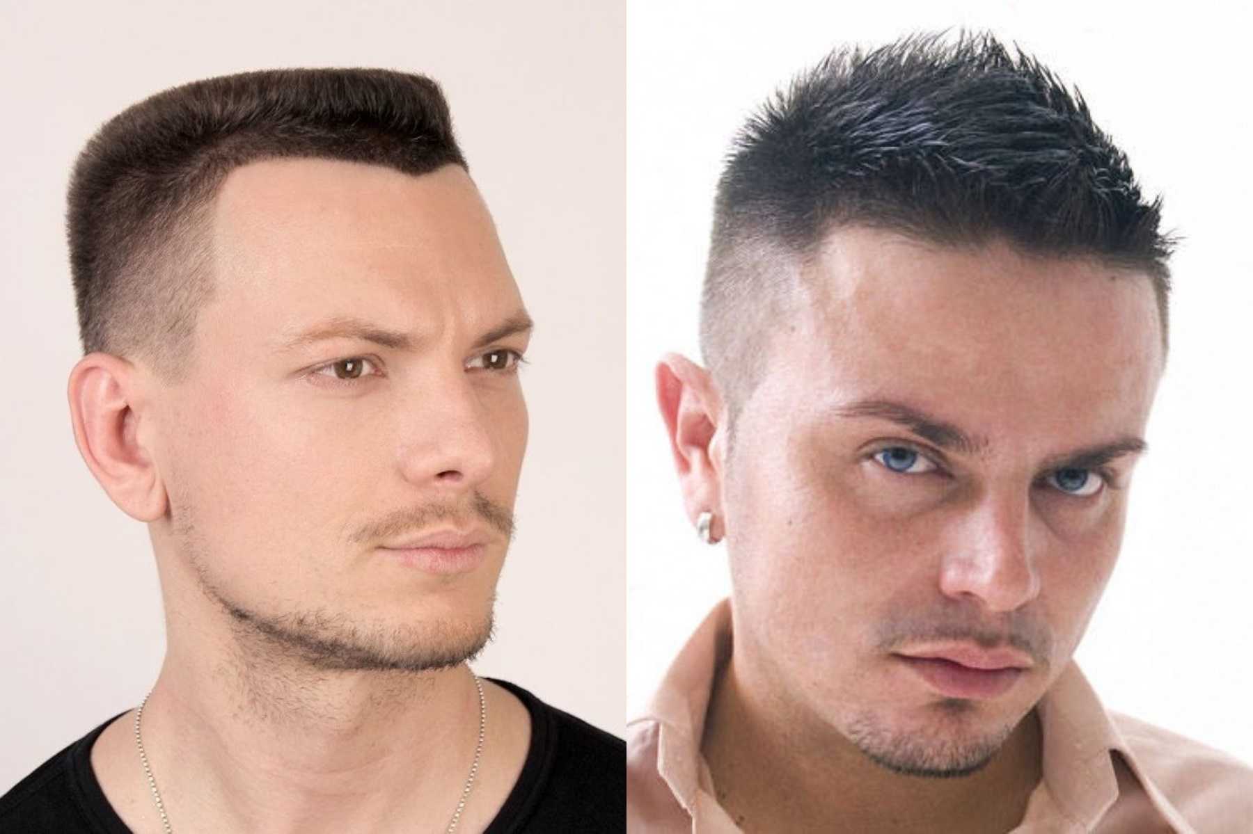 Чётко и грубо постриженные локоны будут колючими, неприятными на ощупь. Машинная стрижка не сможет обеспечить идеальную и однородную форму. Осуществить это возможно только при помощи ножниц. Даже профессиональные мастера не всегда точно могут подобрать наиболее подходящий вариант стрижки. Причёски с удлинёнными прядями на макушке следует выбирать мужчинам с прямой структурой локонов, потому что волнистая шевелюра быстро потеряет форму. Короткие варианты стрижек не рекомендуется выбирать людям с неровной поверхностью черепа и торчащими ушами.