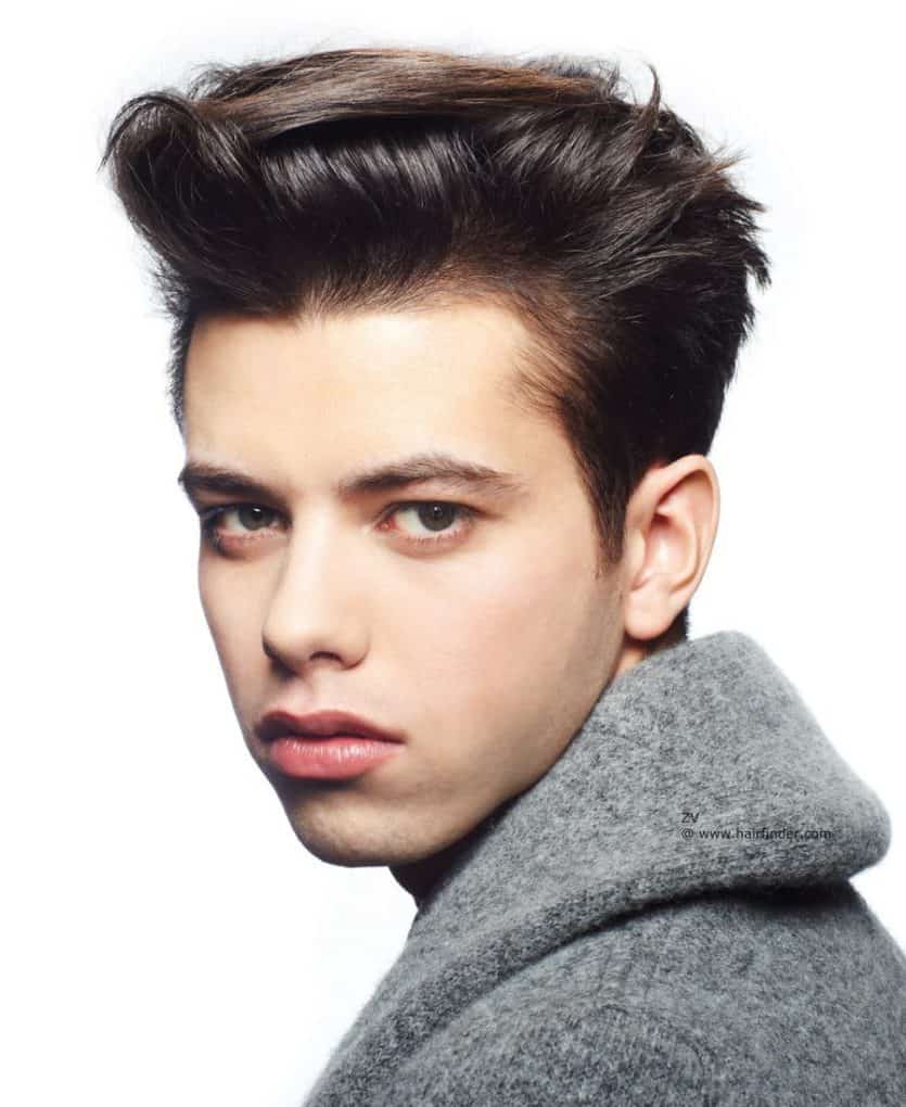 Интеллигентная канадка с мягкой линией перехода и недлинной челкой до 4-5 см нравится мальчишкам в любом возрасте, начиная с маленьких модников 10-12 лет и заканчивая состоявшимися юношами 18+. Такая прическа – образец классики, который при правильной укладке может стать броским и запоминающимся.
