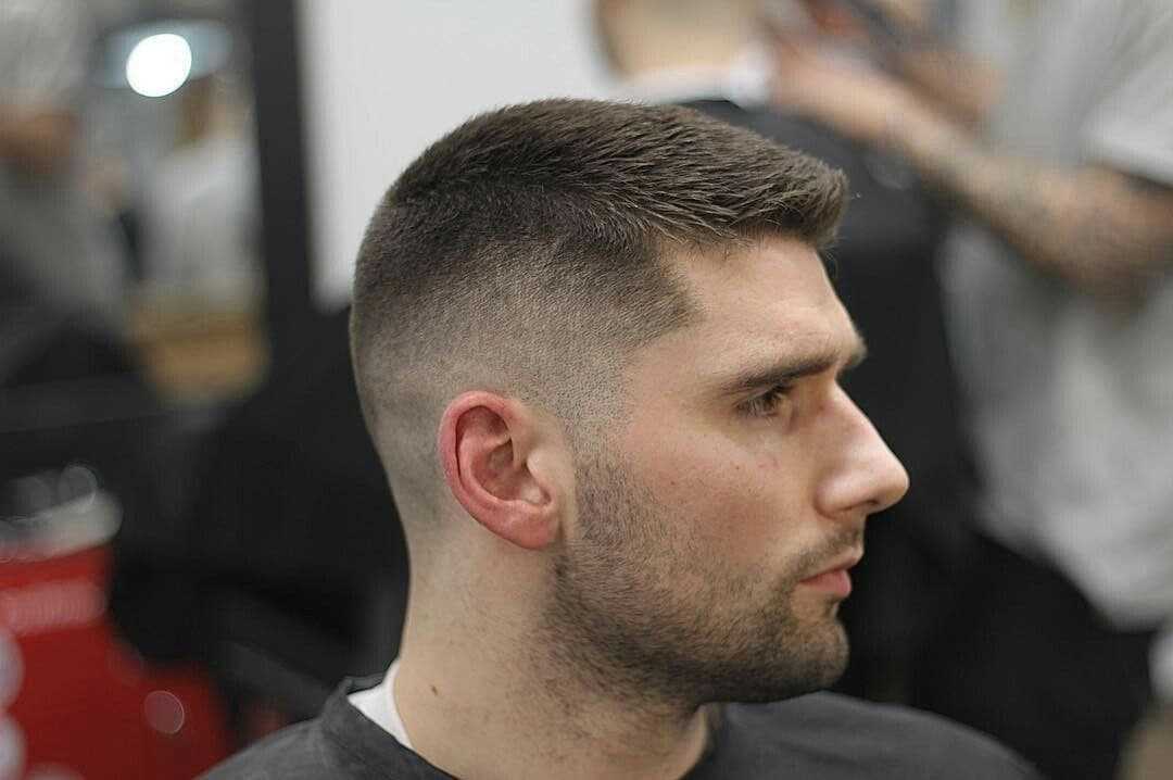 Самый распространенный вариант бокса без челки имеет минимум характерных особенностей и служит своего рода базой для большинства мужских стрижек. Такая прическа подразумевает подстриженные под машинку виски и затылок до 2 см, плавный фейд по направлению к теменной области и длинные прядки до 4 см сверху.
