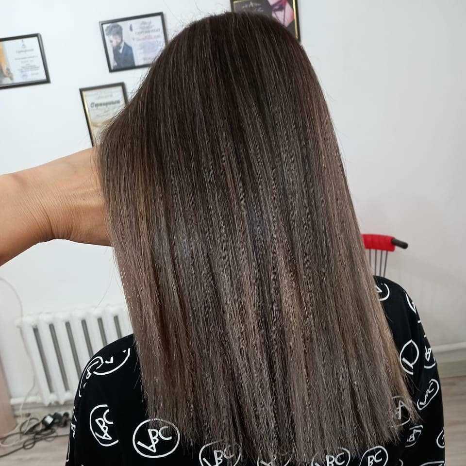 Черно-пепельный или коричнево-серый — прекрасные варианты для обладателей стрижки боб-каре. Лучше выбирать окрашивание в несколько близких цветов, чтобы волосы выглядели объемнее, а образ был более стильным и современным.