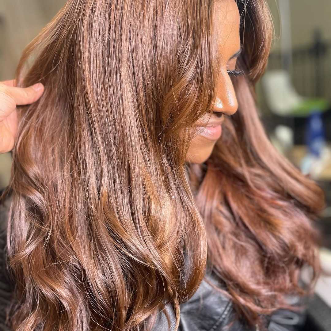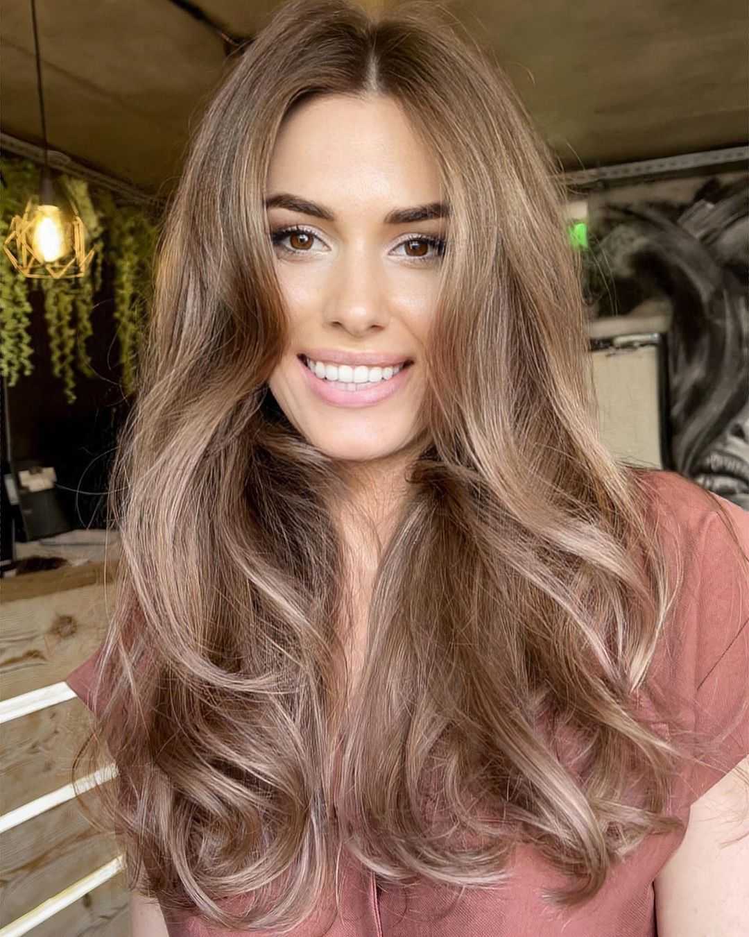 - Пепельно-русый с медным отливом. Этот необычный оттенок роскошно открывается на девушках с карими либо зелеными глазами и оливковой кожей.