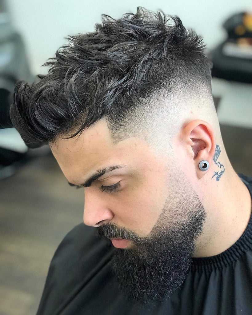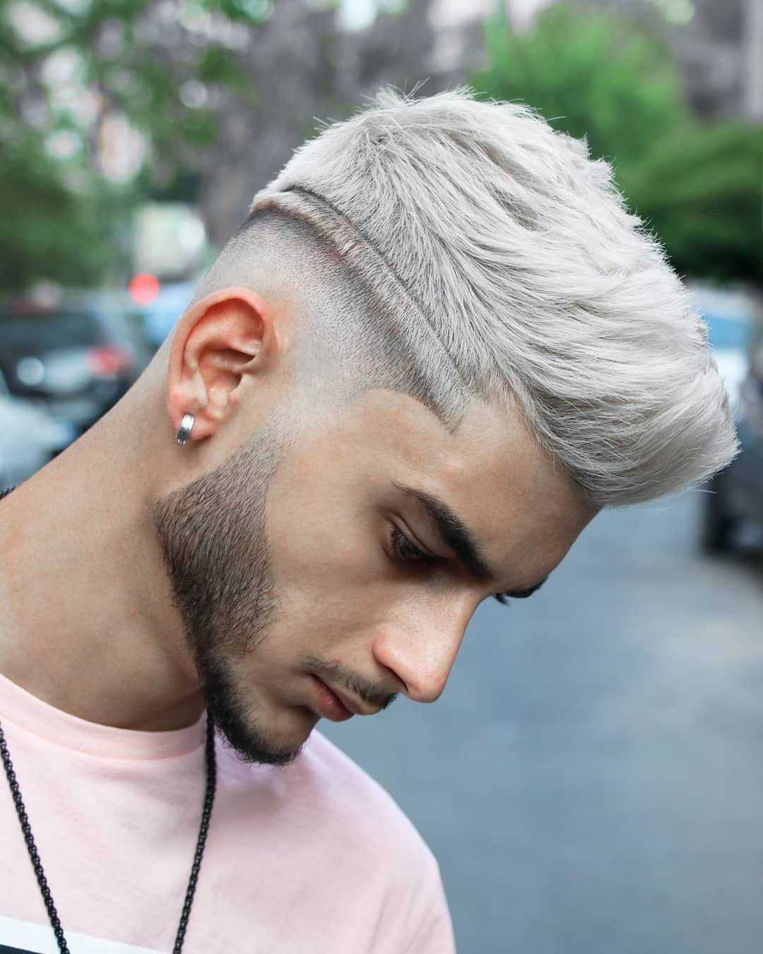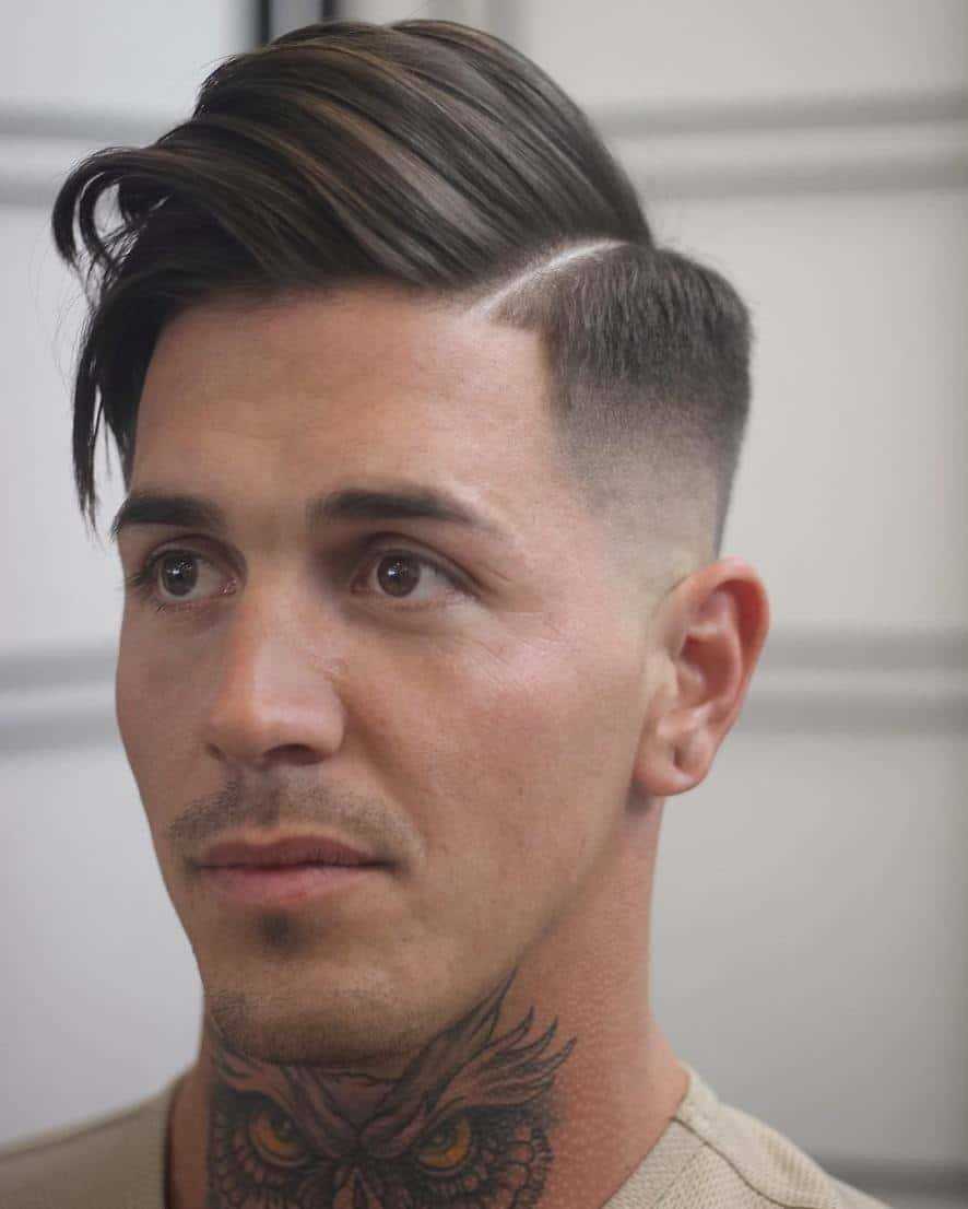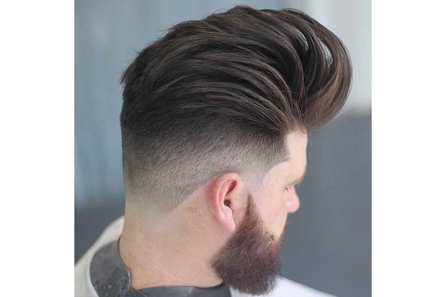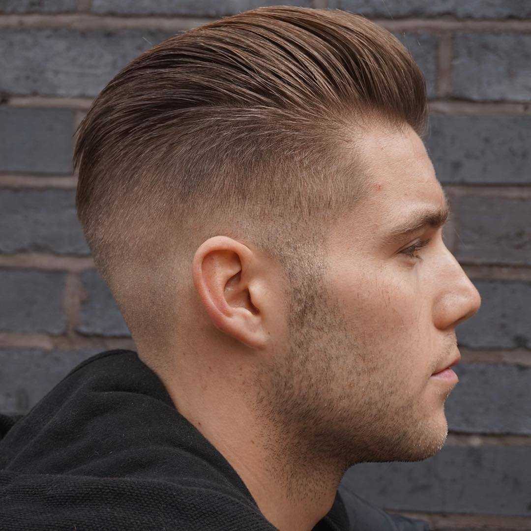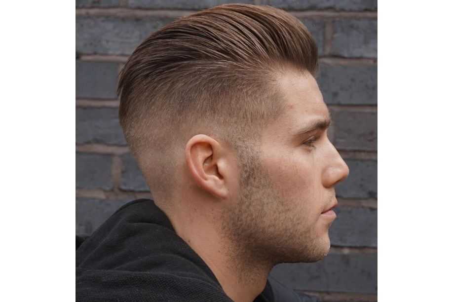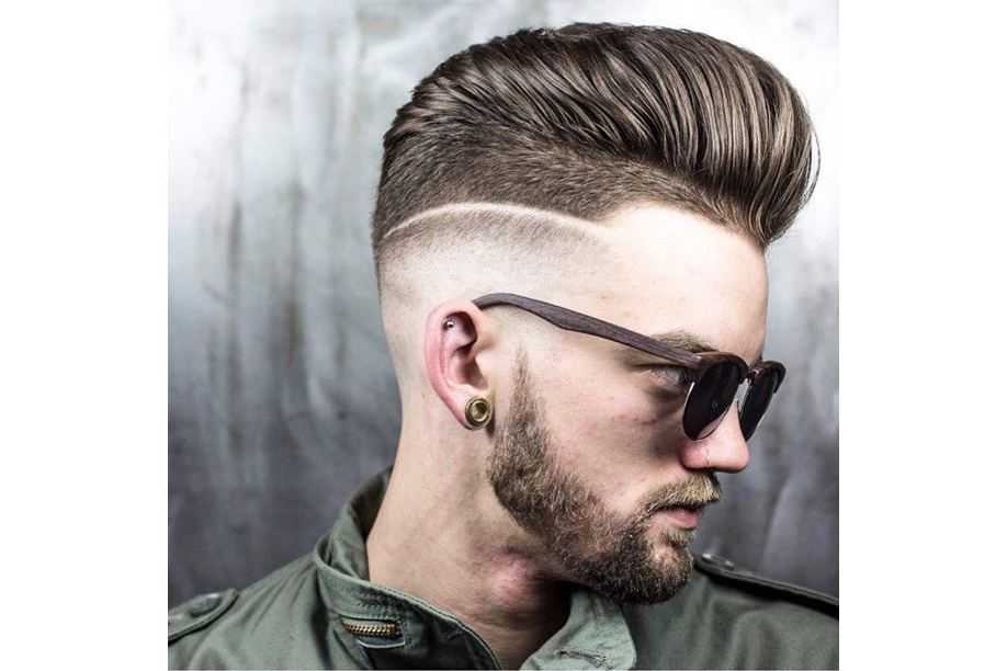 Эта молодежная мужская стрижка от других укладок отличается отсутствием плавного перехода между участками с волосами разной длины. Прическа считается очень узнаваемой – это максимально выбритые виски в сочетании с хорошим объемом волос на макушке и затылке.