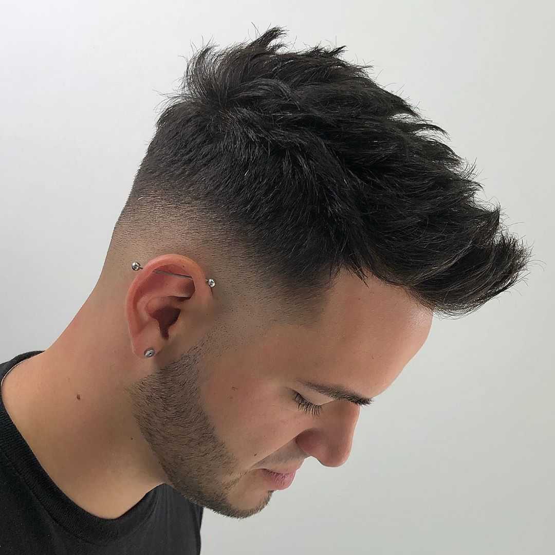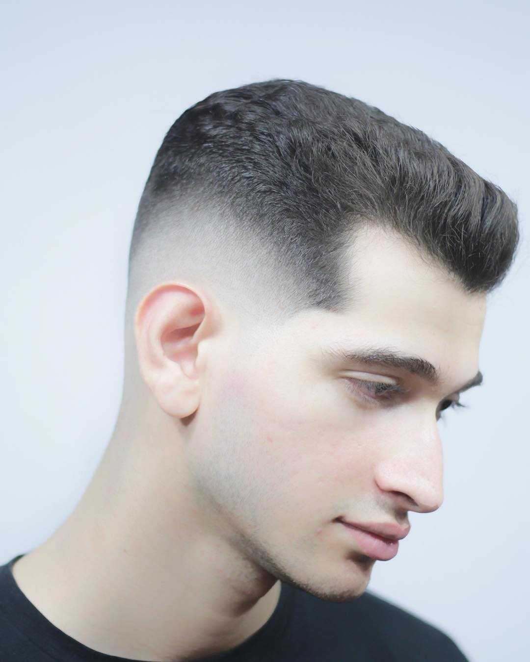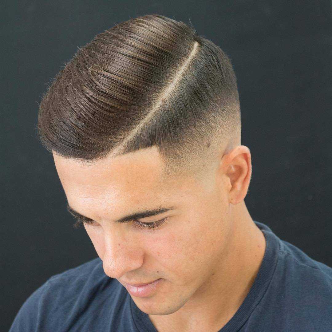 Суть стрижки заключается в следующем: укорачиваются волосы на висках, сверху длина волос достигает пары сантиметров или меньше по усмотрению клиента, переход от верхней части к вискам плавный. Подойдет на короткие волосы.