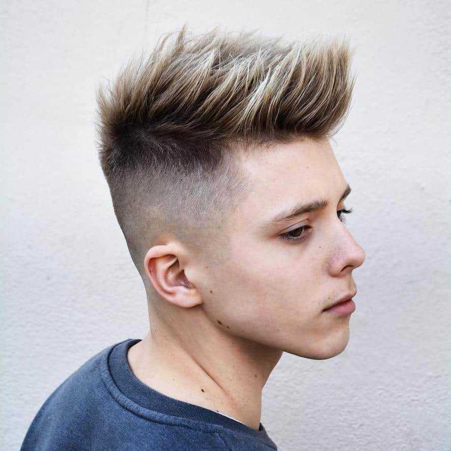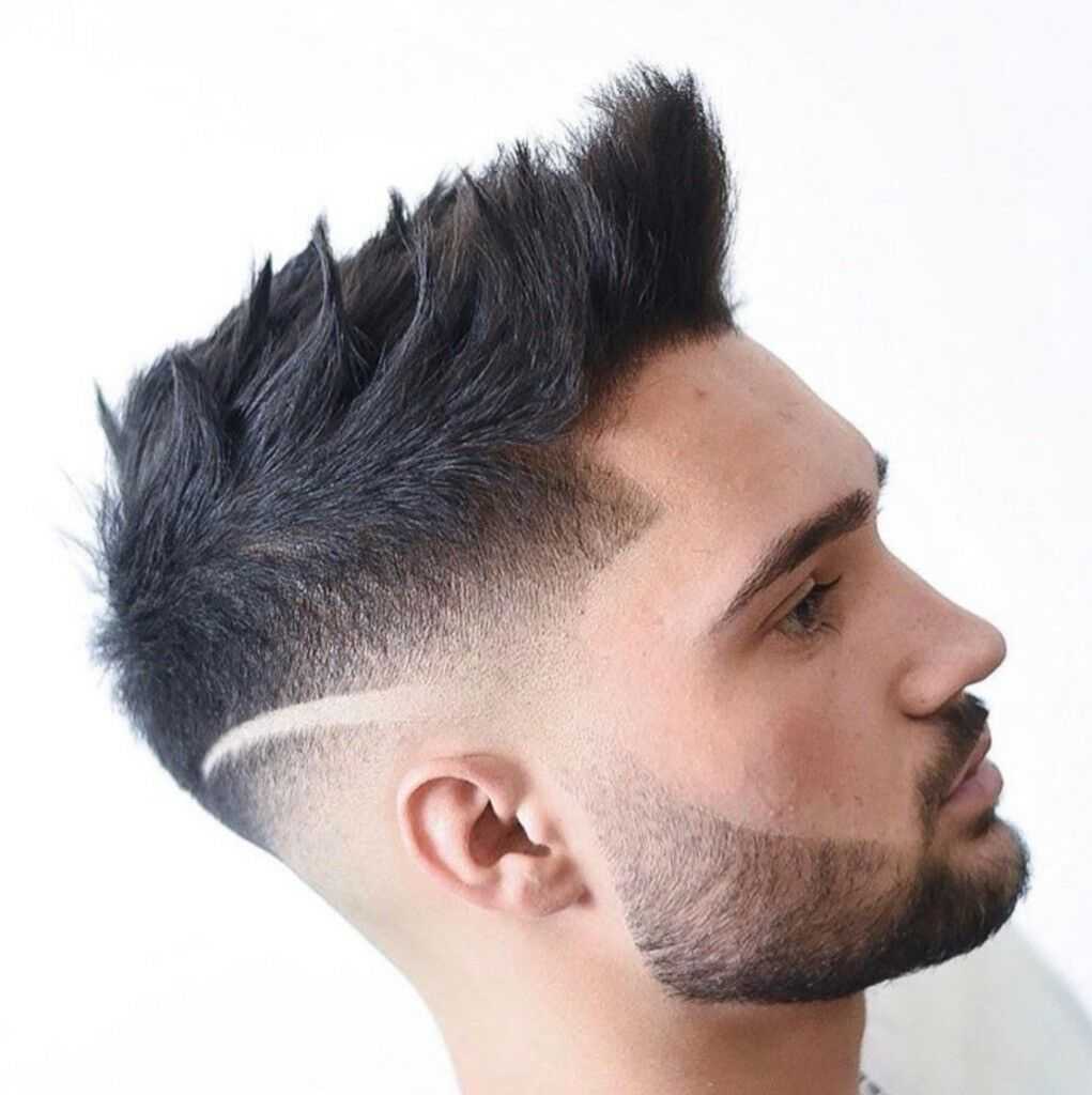 Резкий контраст, отделяющий бритые участки головы от более длинного взъерошенного верха делает эту прическу действительно особенной.