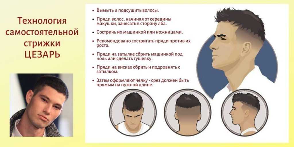 Схема действий при создании стрижки Caesar для мужчин следующая: