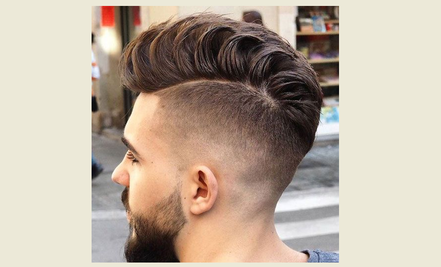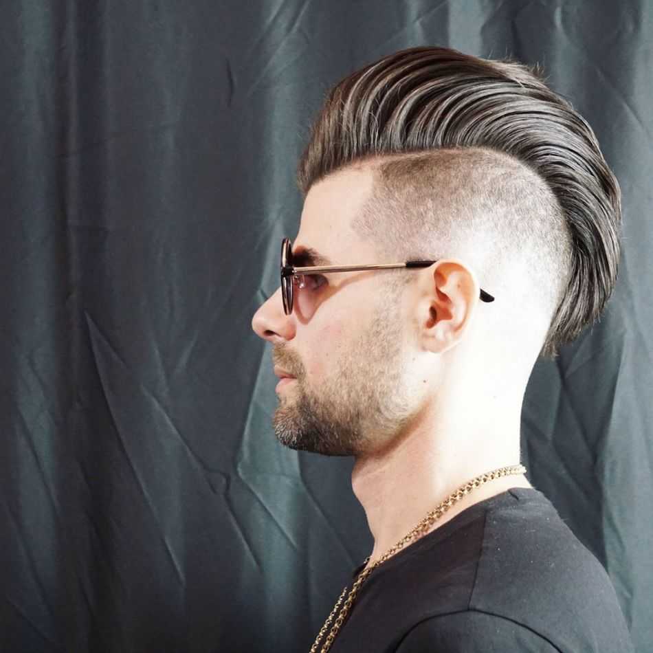 Длинный андеркат (второе название «Помпадур»), напротив, подойдет тем, кто любит уход за волосами. В таком случае локоны на макушке остаются длинными, 10-15 см. Они зачесываются назад, либо ниспадают вперед, образуя яркий контраст с выбритыми частями на висках и затылке. Придать прическе больший объем на макушке можно с помощью мусса для укладки.