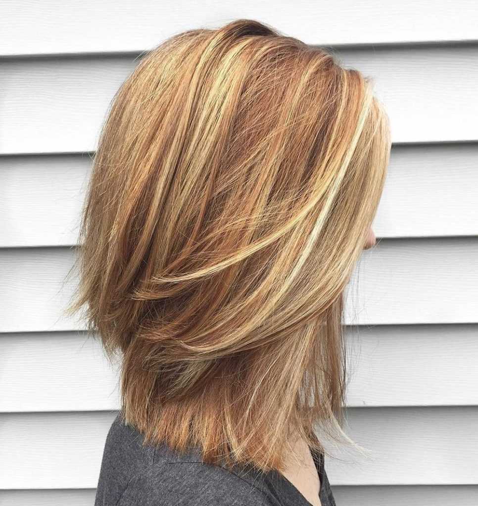- Классический «каскад» с плавными переходами длин. Прическа смотрится очень эффектно благодаря большому количеству слоев и дополнительной филировке.
