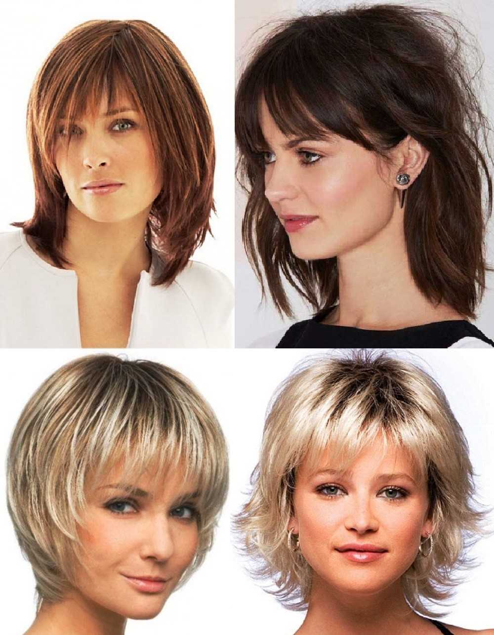 Например, для круглого лица не рекомендуется делать прямую чёлку. Более выигрышным вариантом станет классический Каскад на короткую длину со скошенной чёлкой набок, переходящей в основную длину либо без чёлки вовсе (в таком случае прямые вертикальные линии волос визуально вытянут лицо). При этом правильно делать довольно короткую контрольную прядь, примерно до виска, это позволяет сделать лицо длиннее и даже визуально добавить немного в росте.