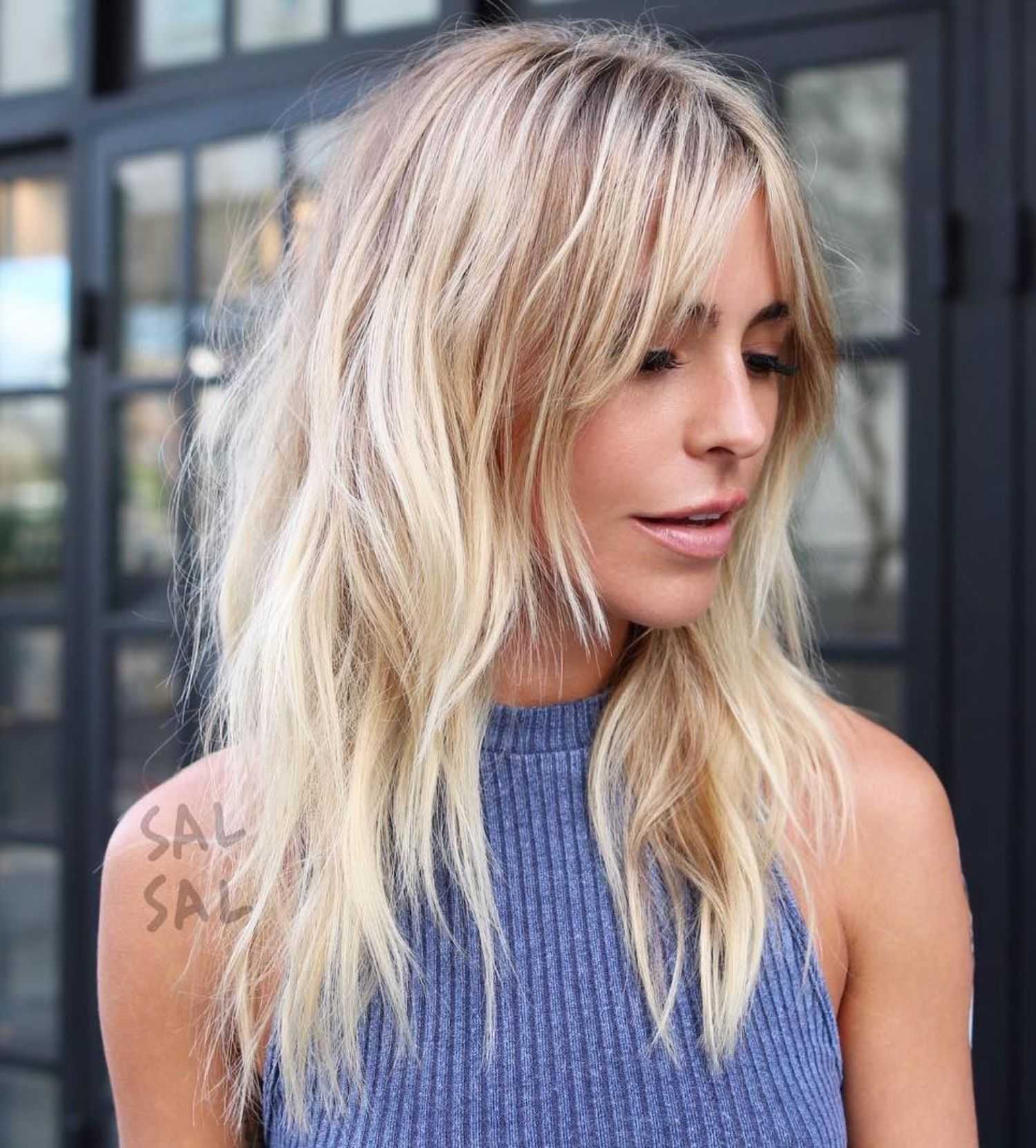 Главное — вам не нужно средств и приборов для укладки. Она выглядит лучше всего, когда волосы высыхают без вмешательства фена и средств для укладки. Рваная лесенка не должна быть перегружена косметикой. Поэтому лучшим выбором будет нежная пенка, которая поднимет прядки у корней и брызги морской соли — благодаря этому вы получите эффект нежных волн.