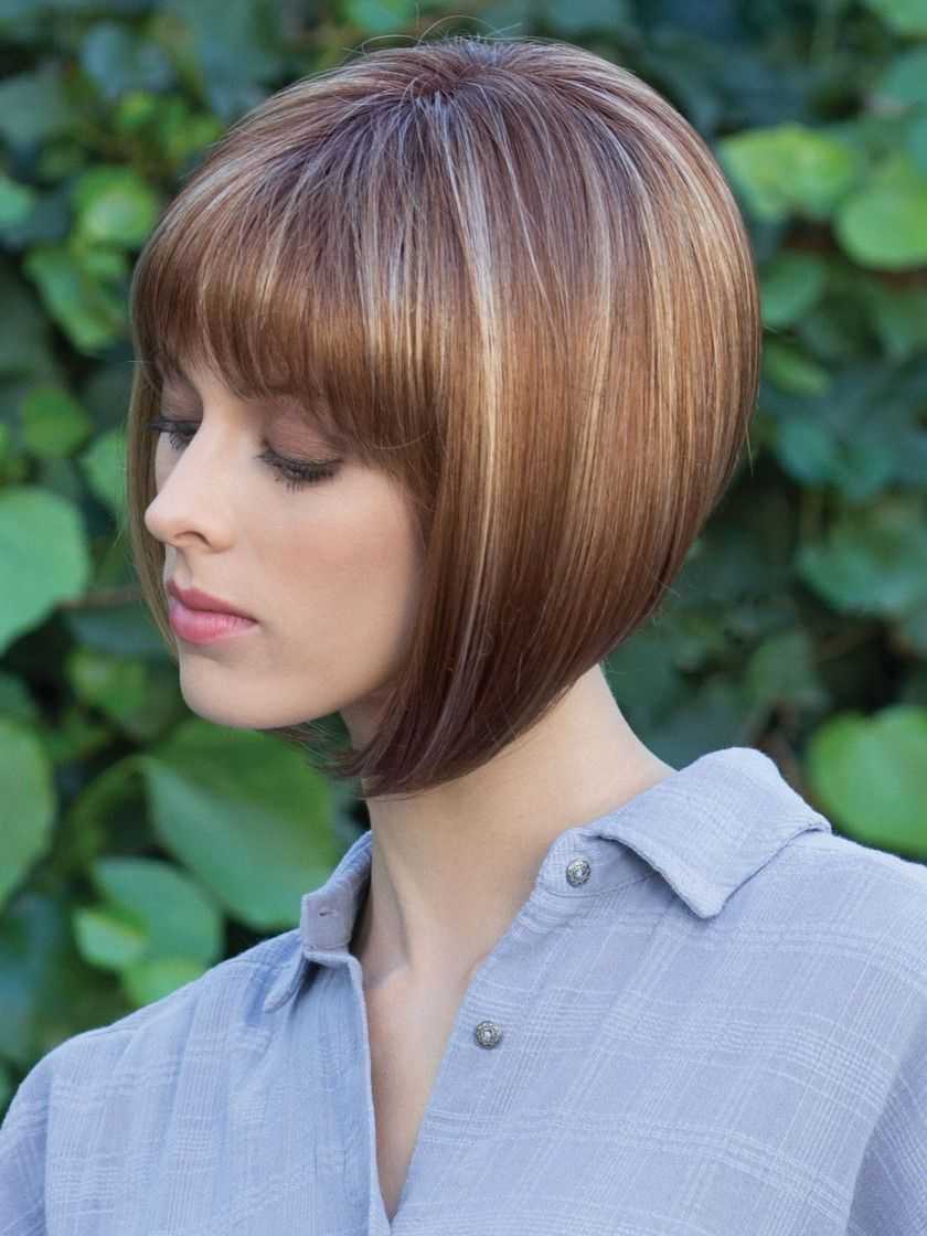 Особенно удачно будет выглядеть стрижка Боб 2021 с сильно укороченным затылком и объемной макушкой. Сделать образ молодежным и задорным поможет косая челка.