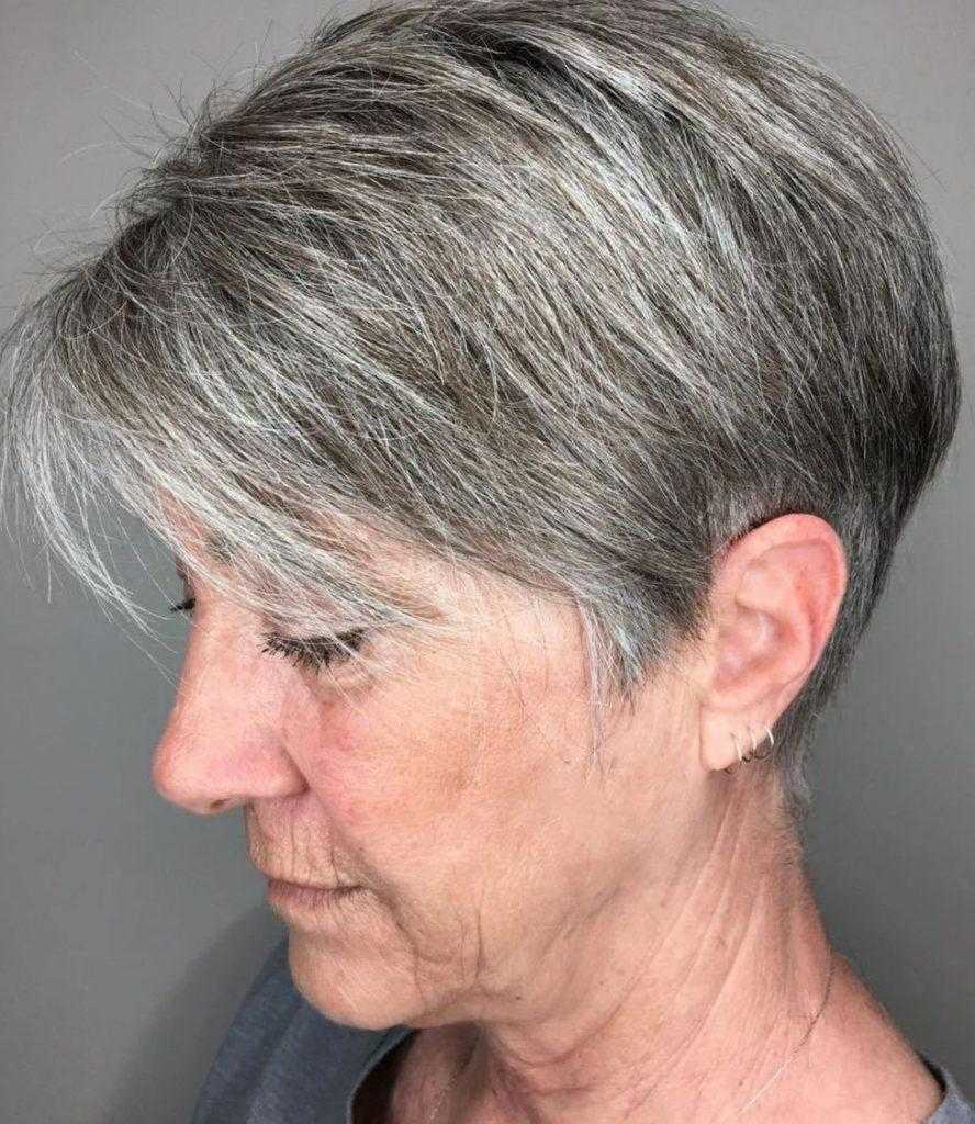 Для пожилых людей мастера рекомендуют подбирать максимально аккуратный вариант стрижки пикси, который не потребует длительной укладки. Это всегда плавные и ровные срезы, которые производят дополнительный объем, но ровный срез прядей без создания перьев. Здесь редко можно увидеть филировку, но может присутствовать градуировка. В основном пикси делается исходя из типа и состояния волос.