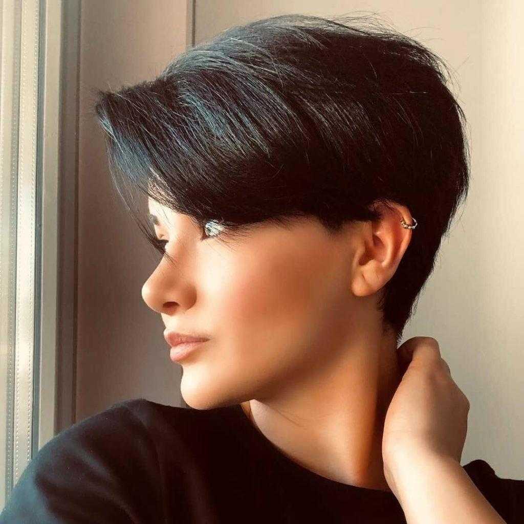 Пикси очень красиво смотрится в темном исполнении. Оно лучше подойдет к темной, оливковой и загорелой коже, где будет идти красивая гармония между цветом и оттенком кожи. Если со цветом более менее понятен подбор, то сама технология стрижки и добавление челки будет зависеть от черт и типа лица.