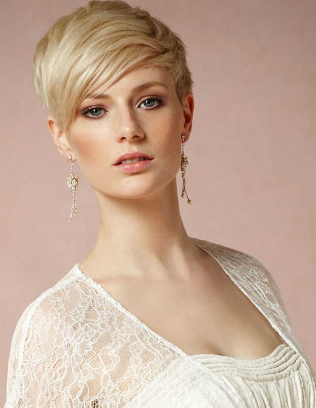 Для круглого лица идеально подойдет пикси с андеркатом, а также с добавлением длинной челки. Как мы уже писали выше длинная челка лучше других справляется с коррекцией лица и позволяет сделать из кругла овал. Еще можно подобрать косую челку, челку-шторку и набок.