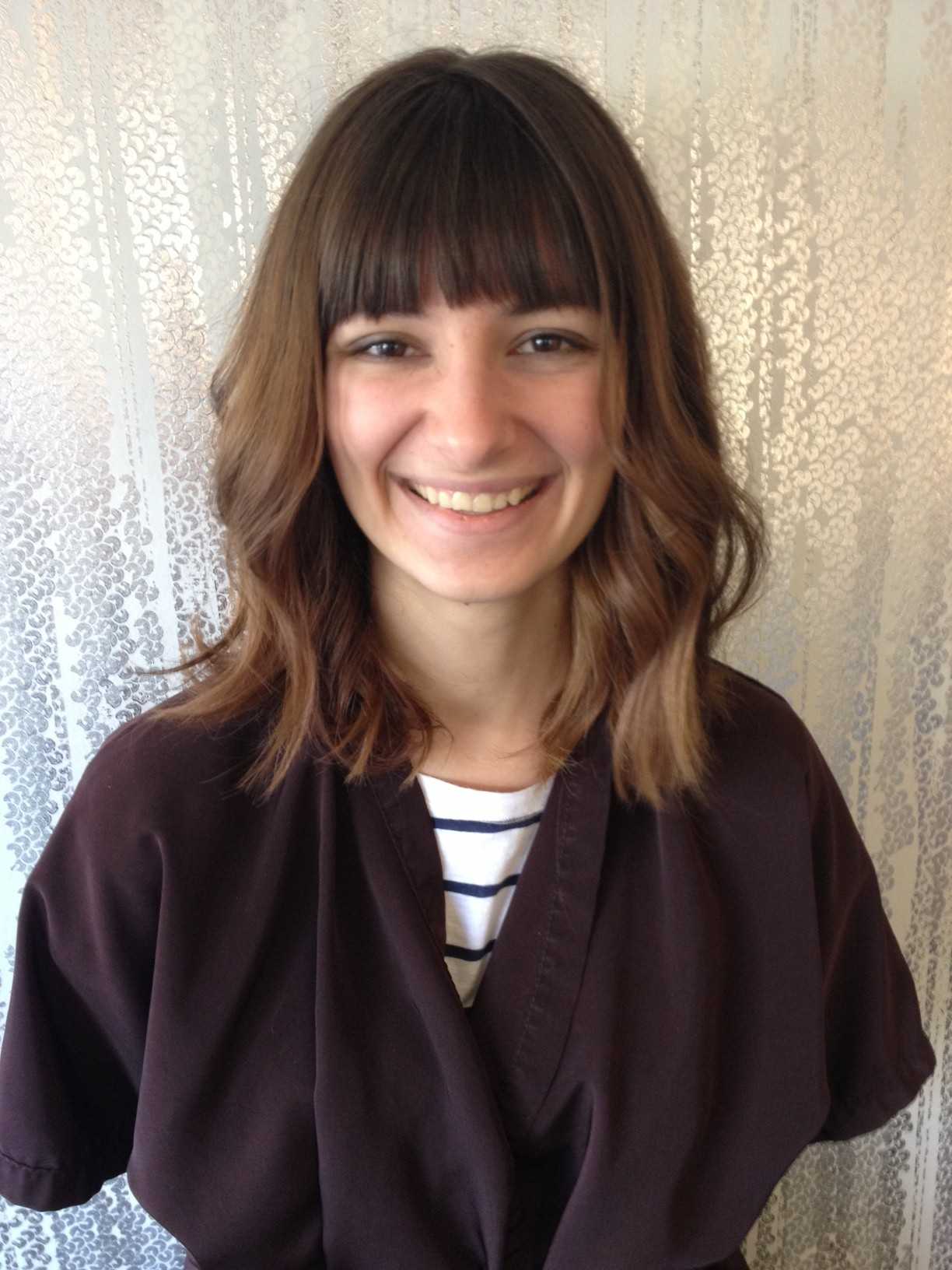 На данной фотографии видно, что у девушки довольно широкий лоб. Такую особенность лица скрывает рваная челка, кроме того, объемные волосы корректируют узковатые скулы, придавая им объем.