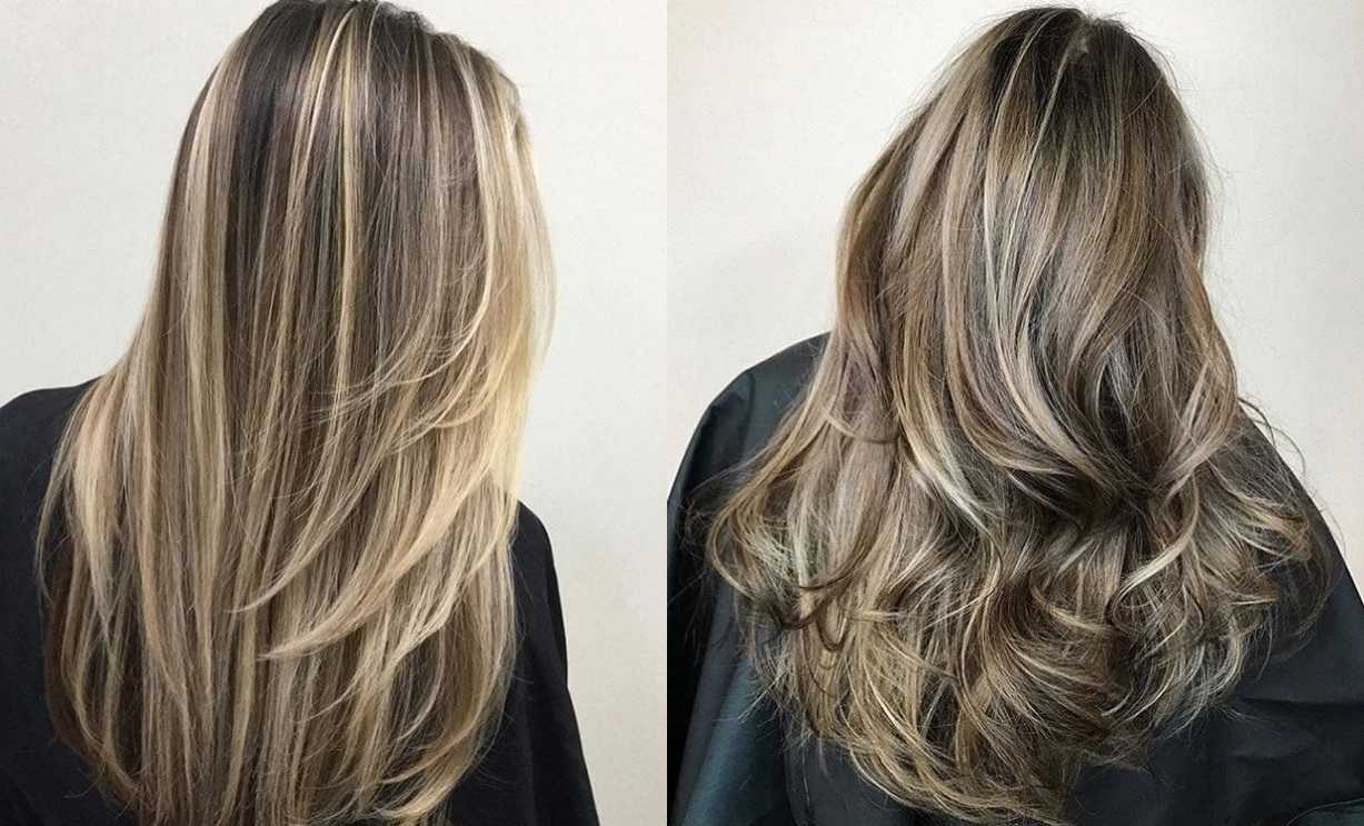 Каскад на длинных волосах шикарно смотрится со многими видами окрашивания: балаяж, аиртач, шатуш, сомбре, калифорнийское милирование, блондирование, брондирование.