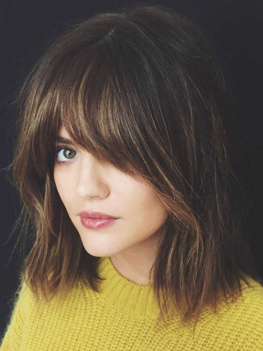 - Градуированные, рваные, каскадные челки — идут все текстурированные и не имеющие симметричных линий. Можно выбрать челку шторку с боковым пробором.