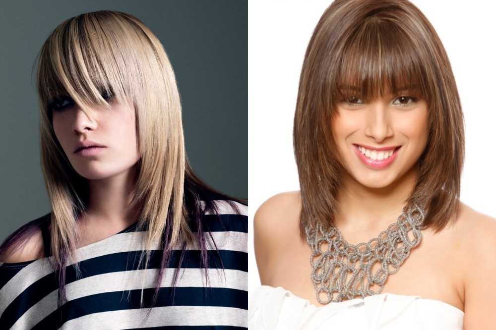 - Длинная густая челка поможет спрятать высокий лоб и исправит внешне слишком вытянутое лицо.