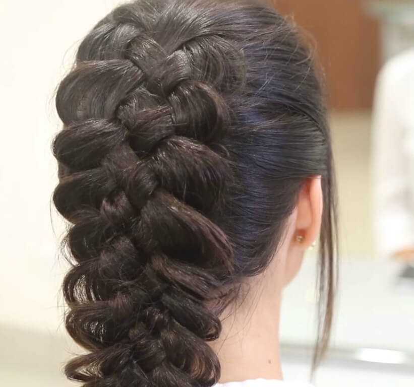 Такая коса идеально подойдет для вечерних торжеств или романтических свиданий. Выглядит она очень изящно, такая прическа точно придаст вашему образу нежности и женственности.