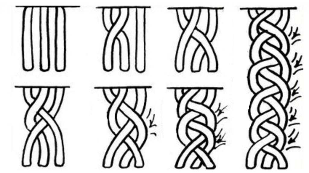 - Перекрестить посередине косичку с оказавшейся рядом бывшей правой.
