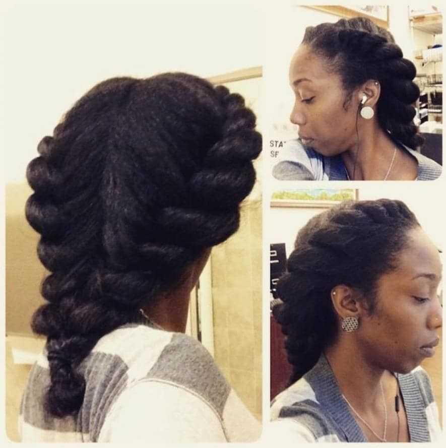 - Прядь, лежащую ближе к лицу переместите поверх второй, заворачивая вверх