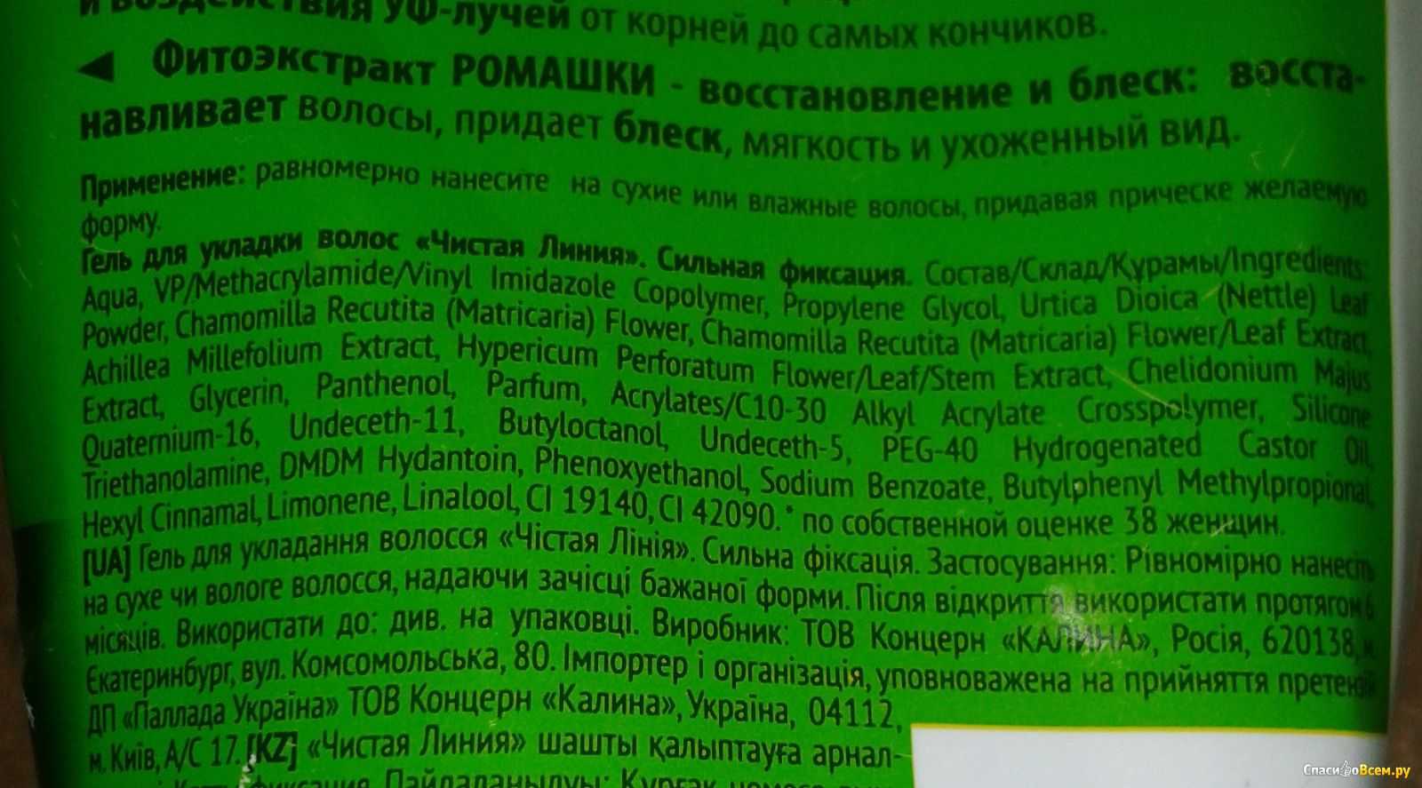 Состав геля может отличаться для некоторых продуктов, но основной состав выглядит следующим образом: