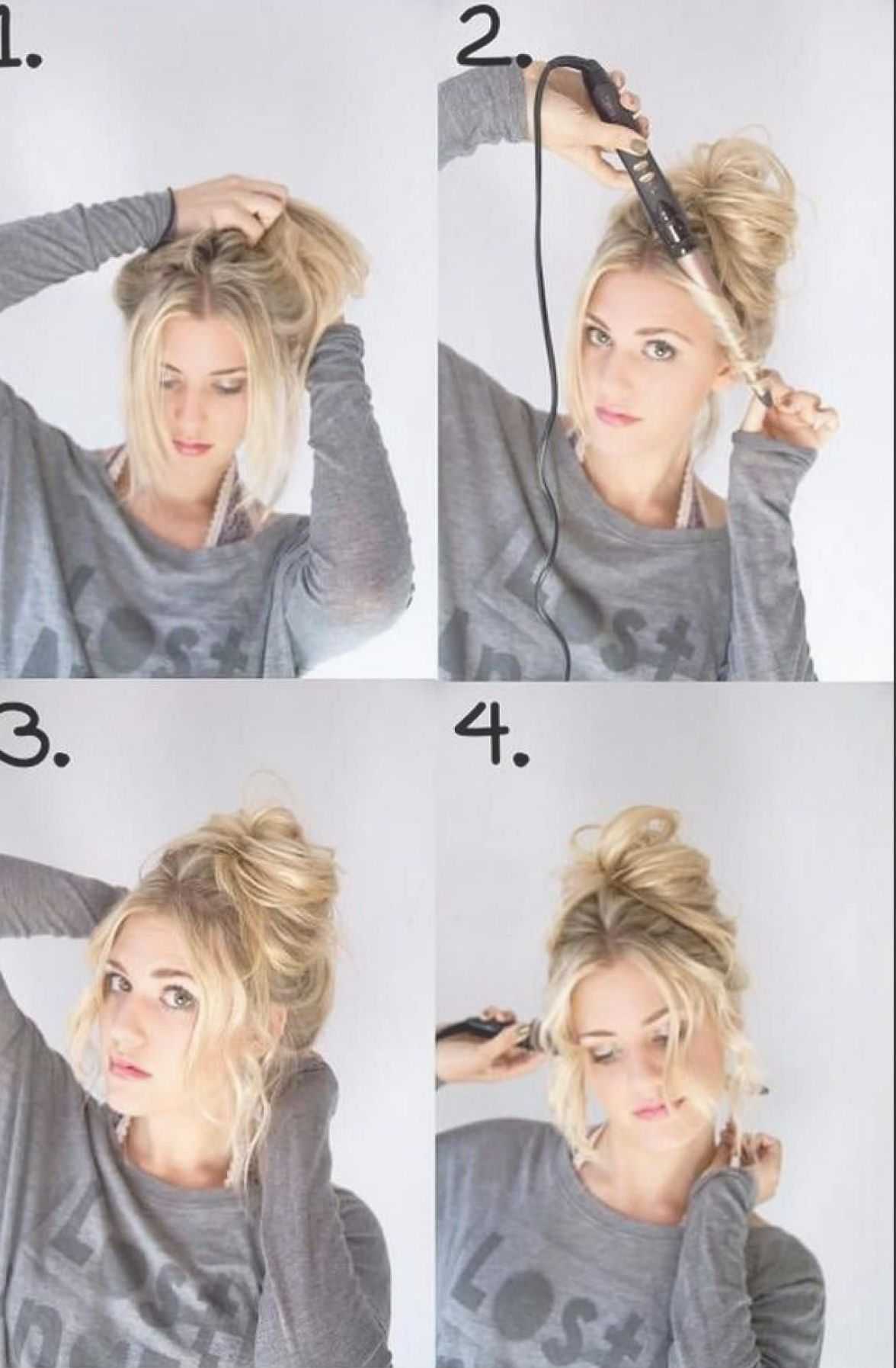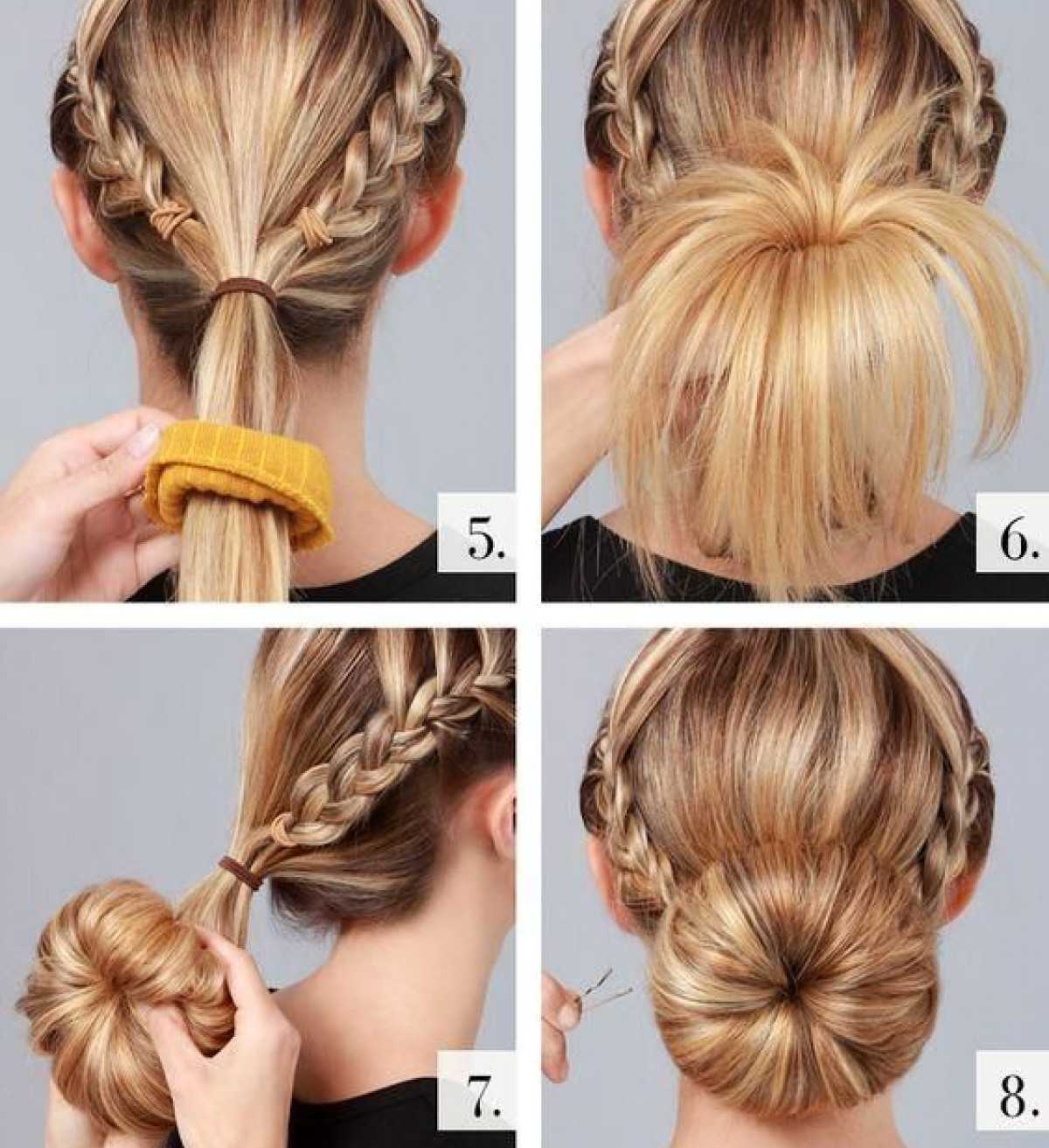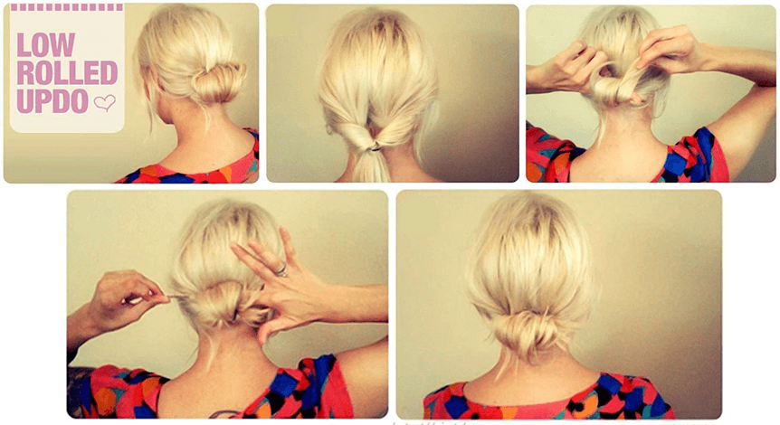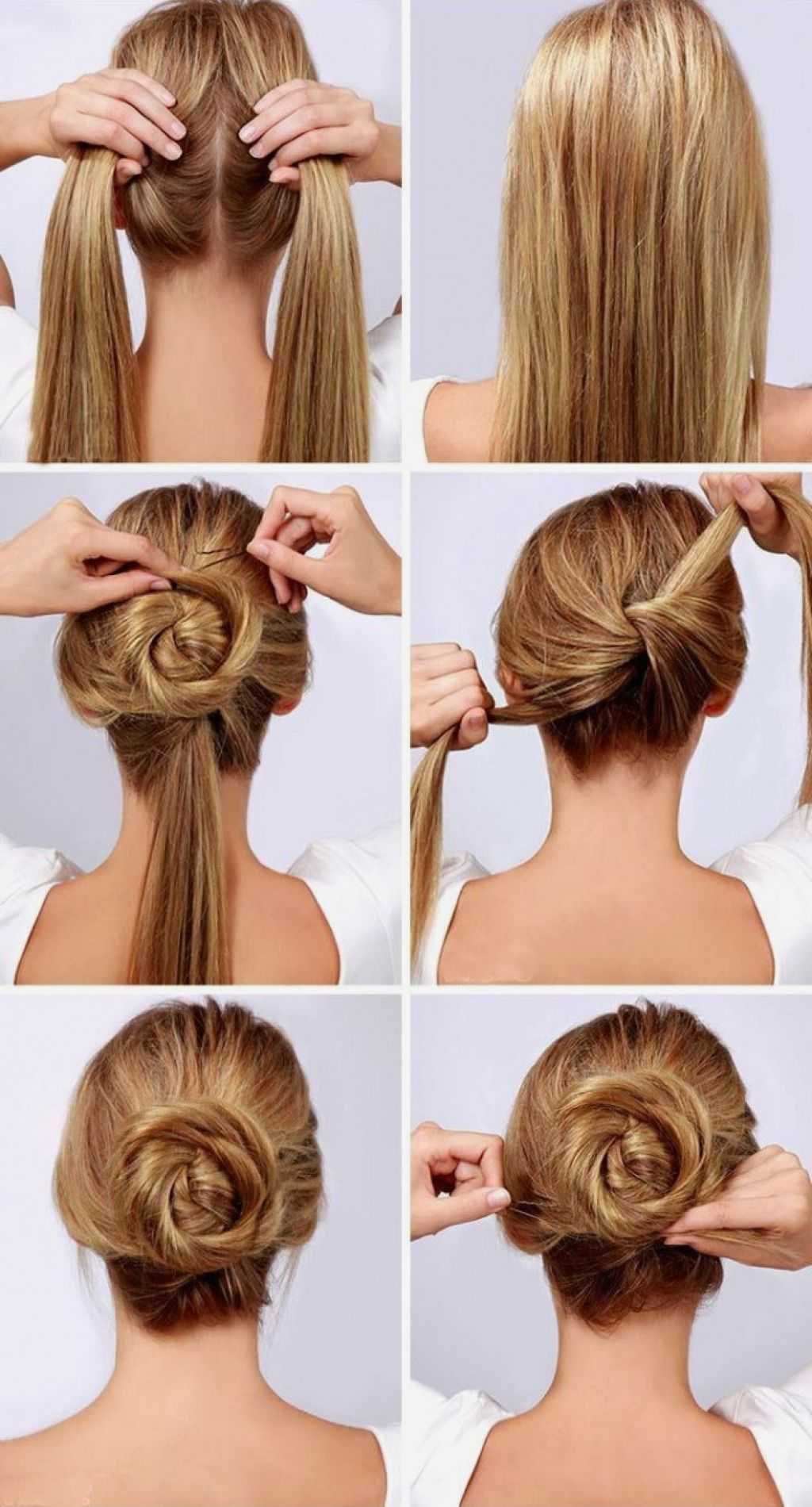 - Закрутите волосы вокруг резинки и заколите шпильками. Готово!