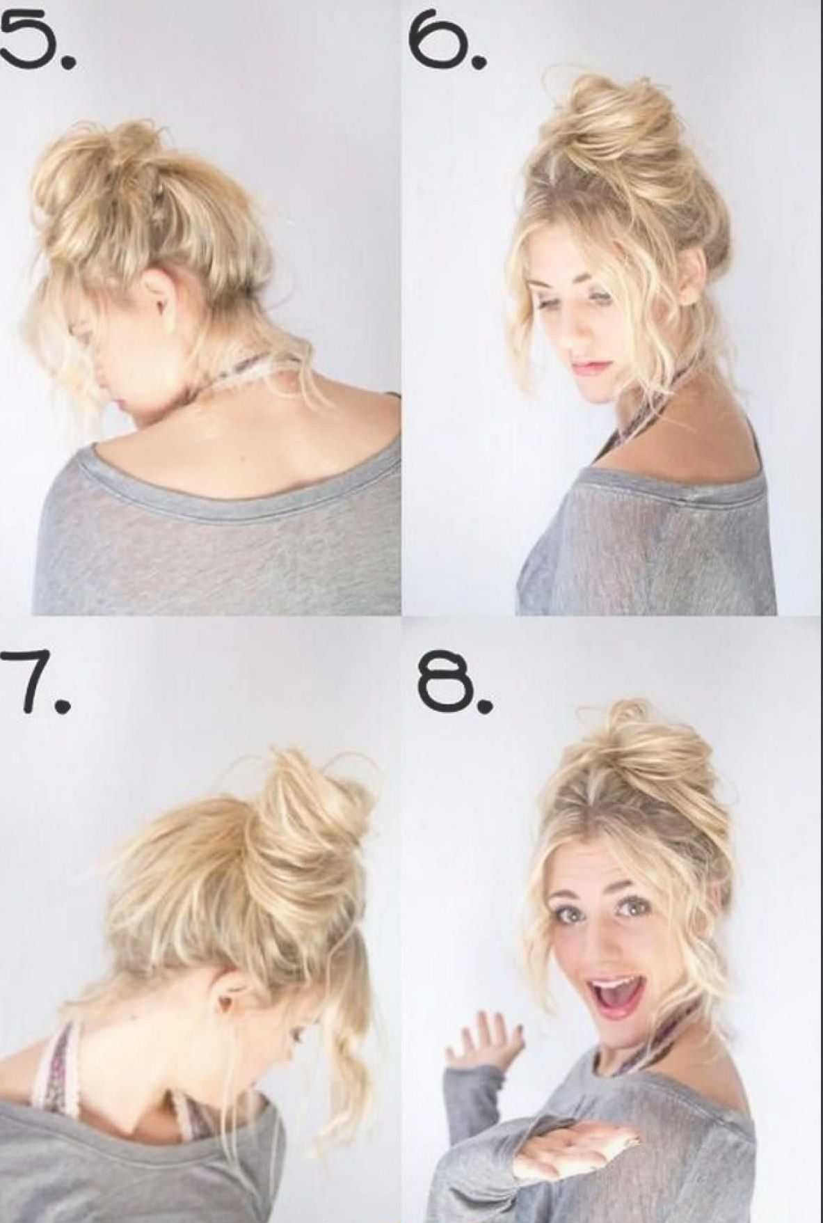 Если же волосы короткие, стоит собрать их в пучок следующим образом: