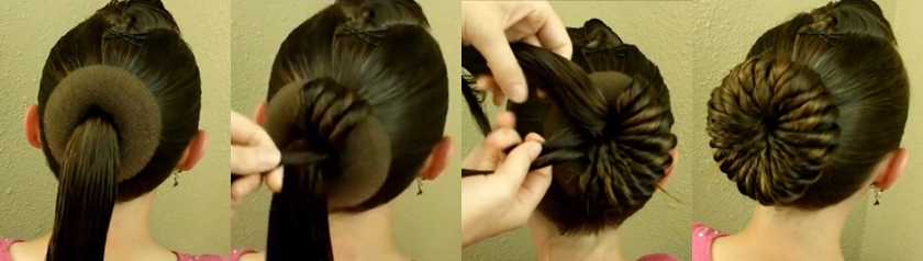 Научившись делать таковой пучок, вы можете очень стремительно укладывать свои волосы в вечерние прически с пончиком для волос.