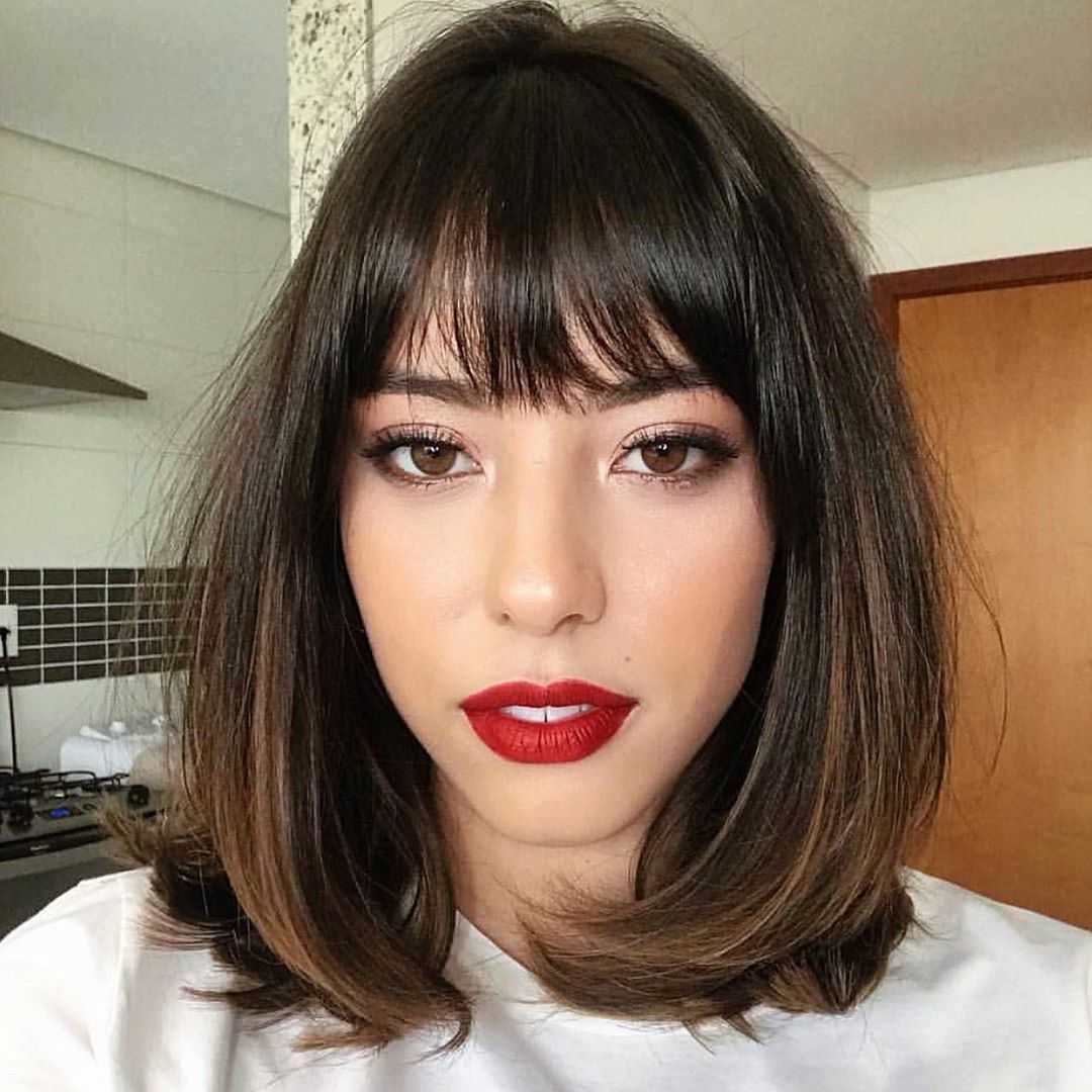 - Если лоб сильно высокий, визуально его уменьшить поможет густая ровная челка. При вытянутом лице стрижка должна быть ниже подбородка.