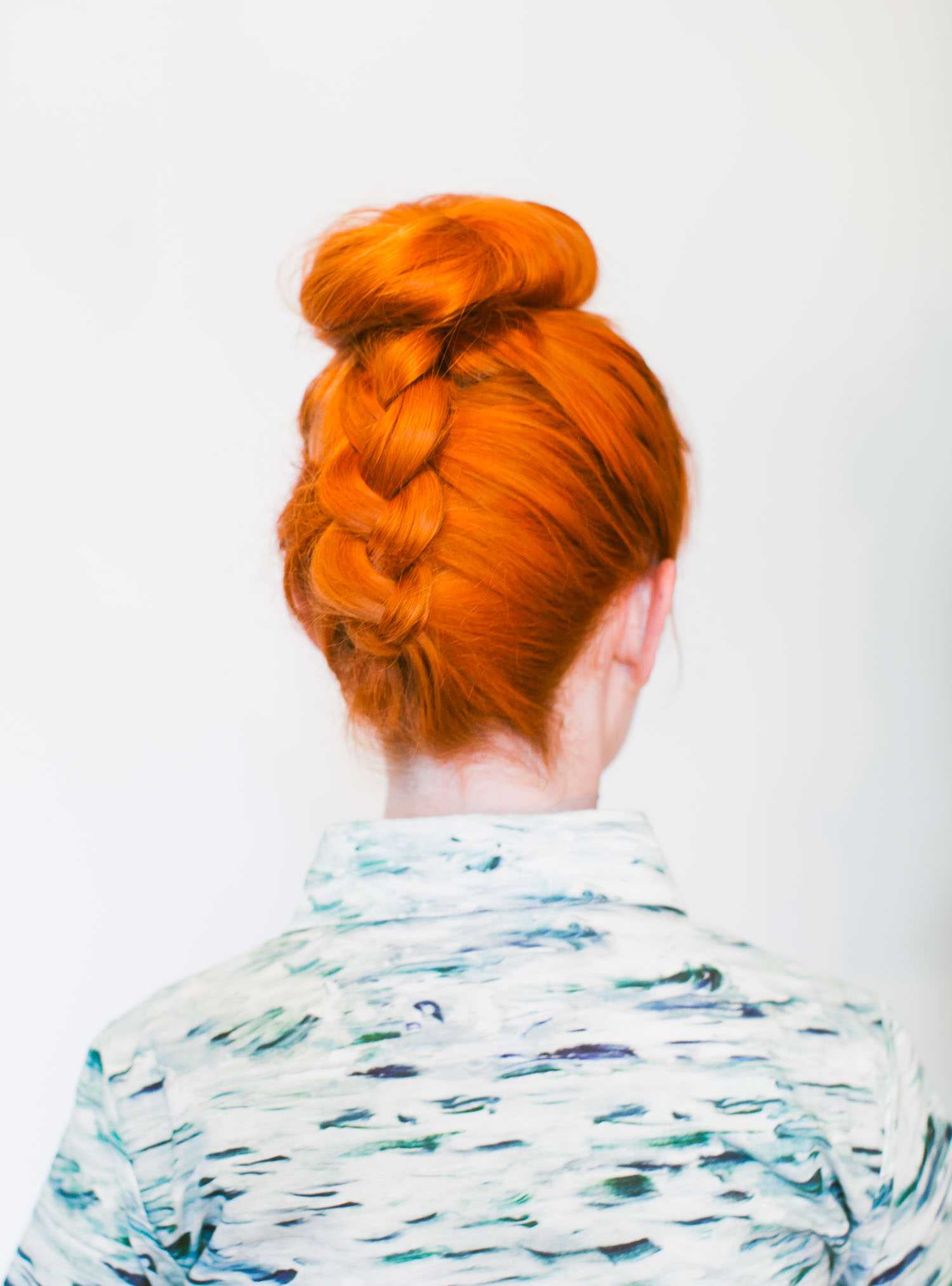 Если при укладке использовать гель, можно добиться максимально гладкого результата, который подойдет не только для работы, но и для сценического образа танцовщицы. Чтобы сделать укладку наряднее, начешите теменную зону у корней и сбрызните лаком, а уже затем начинайте плетение от макушки.