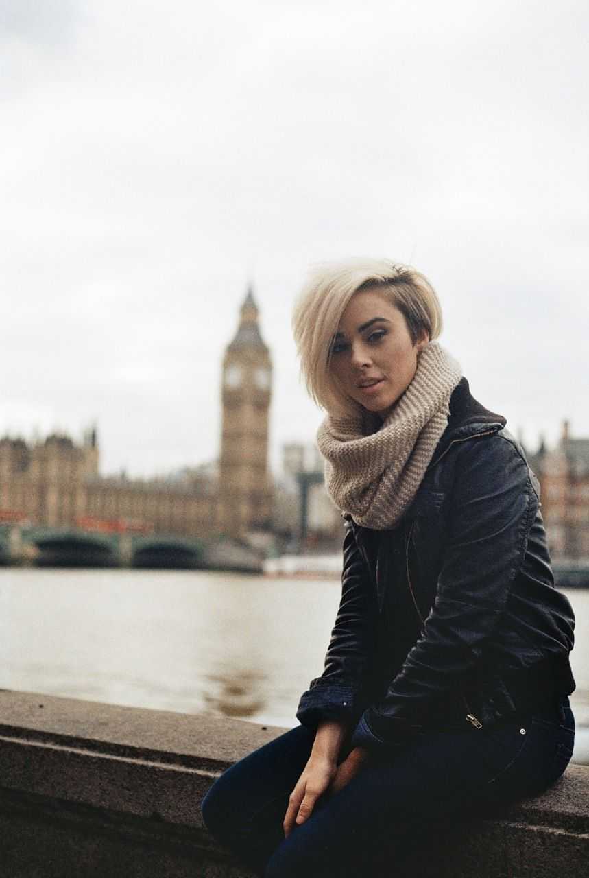 На суперкороткой стрижке актуально смотрится асимметричная челка с боковым пробором. На одну сторону ото лба падает укороченная прядка, а гладкая прядь с другой стороны достигает подбородка или даже спускается еще ниже. При желании из такой челки легко сформировать дерзкий глэм-ирокез.