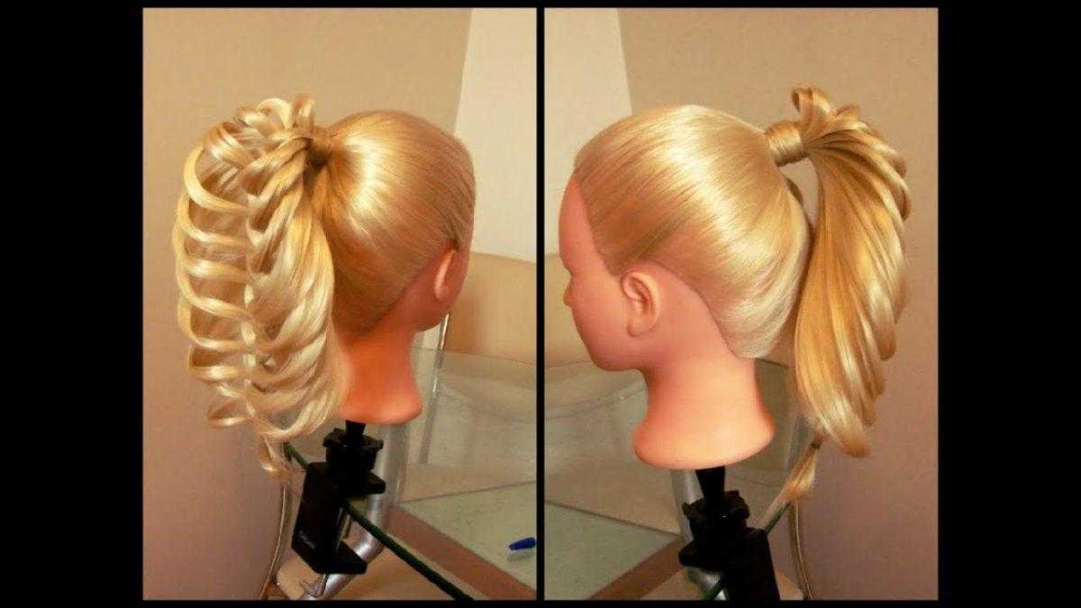 - Вначале заколотый хвостик вытягивают наружу и закрепляют на макушке. Подхваты должны быть примерно равны по объему.