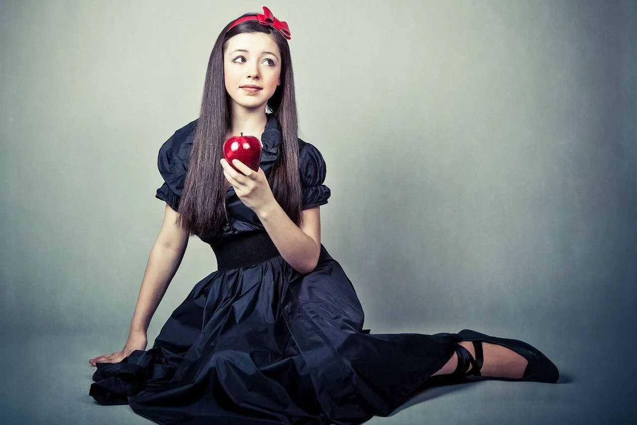 Если природа одарила вас белоснежной кожей и чёрными, как смоль, локонами — не задумываясь, превращайтесь в прекрасную Белоснежку! Не обязательно иметь длинные и густые волосы, длины до плеч будет достаточно.